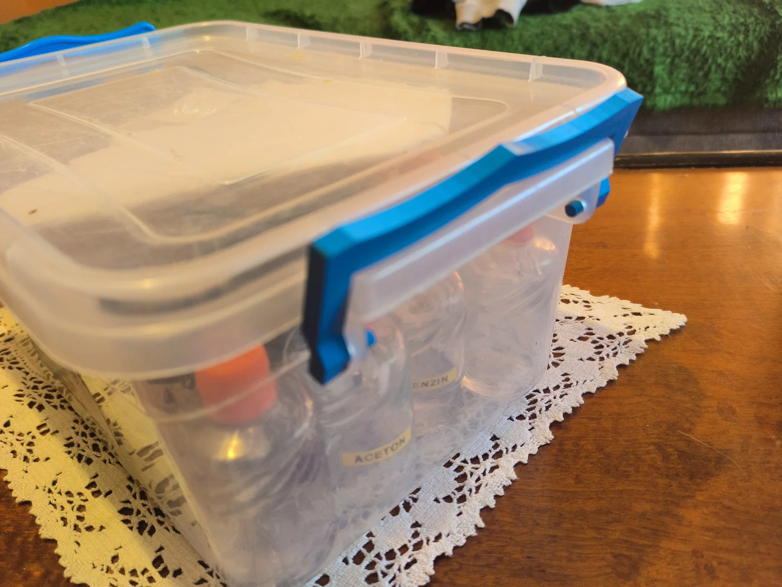 Trên thị trường có vô số kiểu hộp lưu trữ khác nhau, nhưng mình lại đang dùng loại hộp 5L mua ở cửa hàng/nhà sản xuất địa phương mà cái chốt nắp lại bị gãy. Thế là mình tự thiết kế cái chốt mới này, tuy không hoàn hảo 100% nhưng cũng dùng rất tốt.