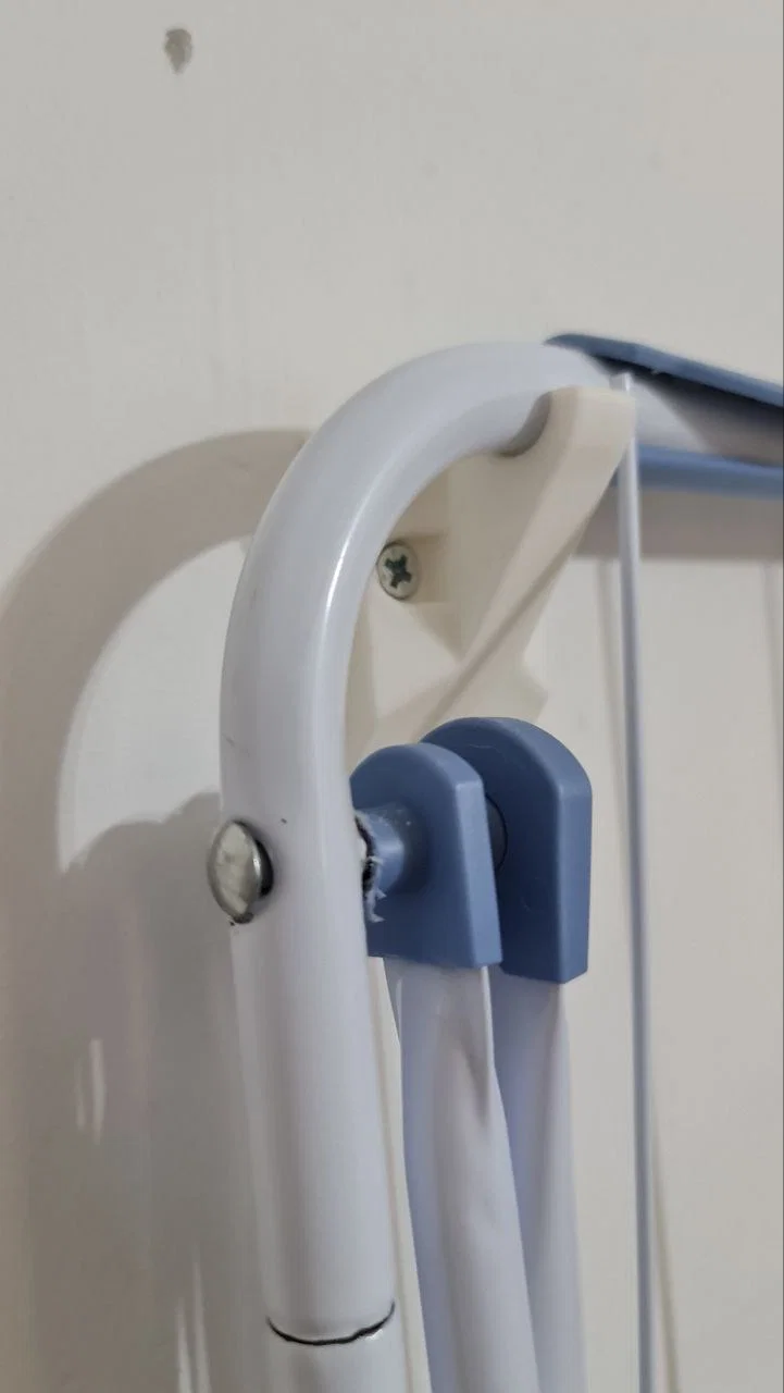 Móc treo máy sấy quần áo gắn tường. Tương thích với ốc vít 4mm và tắc kê 6mm; ngoài ra, bạn cũng có thể dùng keo cường lực. Mình chọn hướng in như hình minh họa để đảm bảo độ bền tối đa cho sản phẩm.