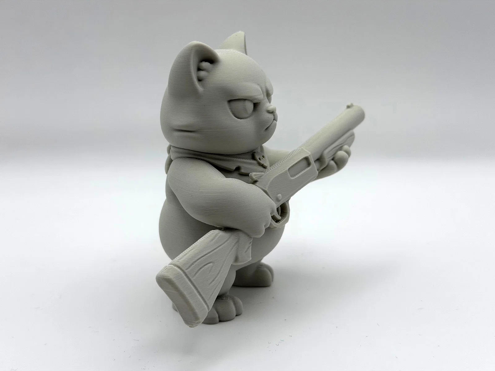 Đừng nhìn đôi má phúng phính mà coi thường chú mèo này nhé! Mẫu in 3D Shotgun Cat cực dễ thương, chỉ cần rất ít support organic là in xong ngay. Món đồ trang trí vừa ngầu vừa đáng yêu cho bàn làm việc của bạn.