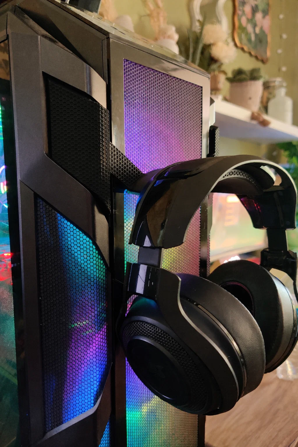 Bao năm nay, tôi toàn vứt tai nghe nằm chỏng chơ trên bàn. Giờ đây, tôi đã có thể treo gọn gàng chúng ngay trên mặt trước của case Cooler Master H500M. Bạn chỉ cần tháo tấm mặt trước, vặn ốc để gỡ các tấm lưới cũ rồi thay bằng các tấm mới đã in. Phần lưới giả được thiết kế để khớp hoàn hảo, tạo vẻ ngoài đồng bộ như hàng nguyên bản. Sau đó, giá treo tai nghe có thể trượt khít vào các rãnh dovetail. Các tấm này có kích thước tương tự tấm lưới đáy, nên bạn hoàn toàn có thể sáng tạo hoặc tùy biến thêm. Lưu ý là hãy nhớ mirror một trong hai tấm vì có phân biệt bên trái và bên phải. Tôi đã in mẫu này bằng nhựa Black Polymaker PLA PRO. Chúc các bạn thực hiện thành công!