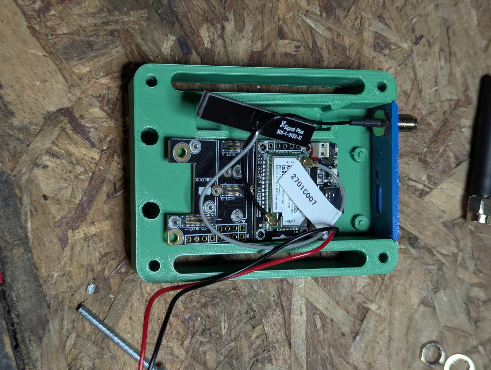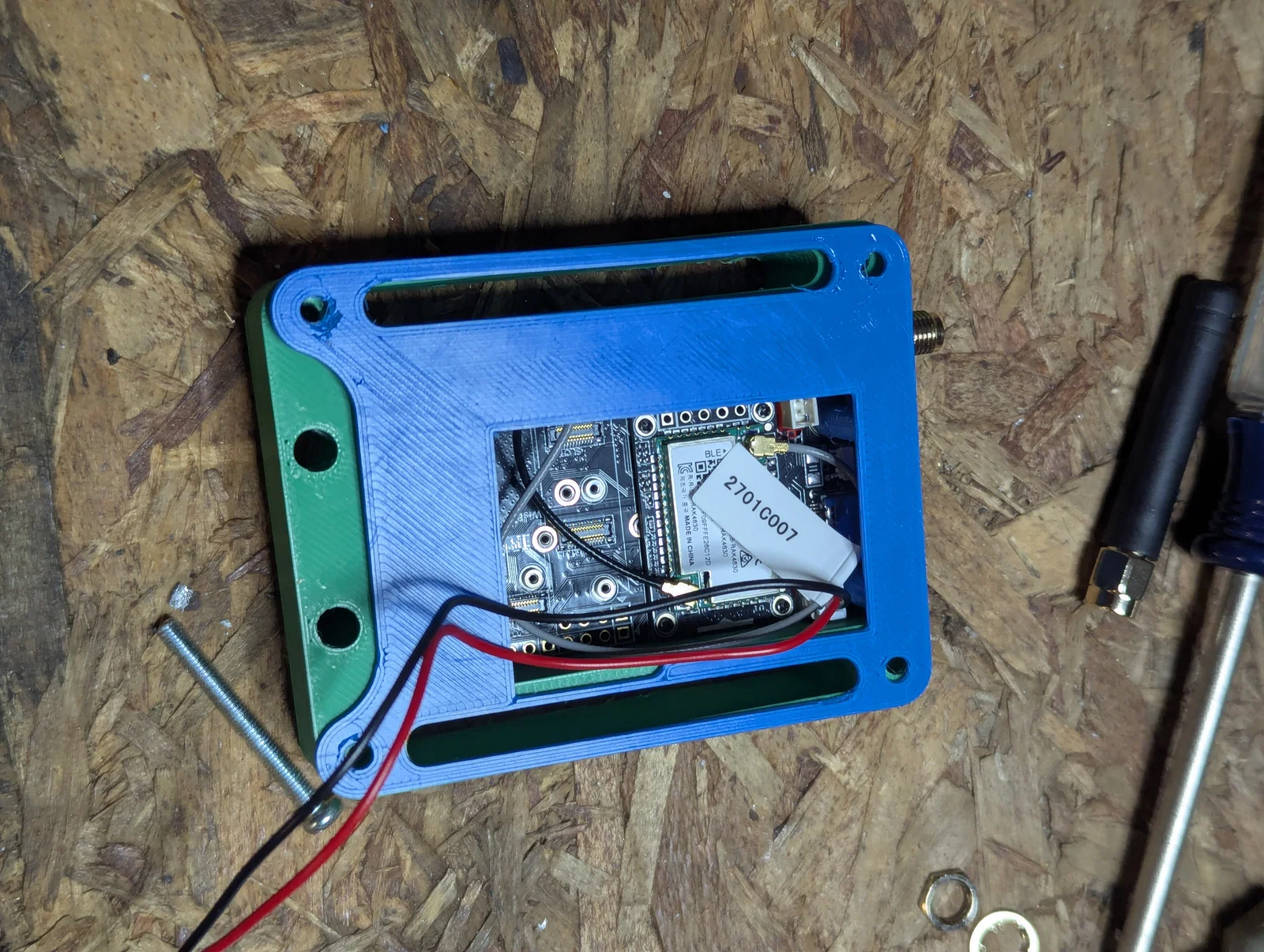 Case này được thiết kế với các phần mỏng ngay phía trên đèn LED để bạn có thể nhìn thấy ánh sáng xuyên qua nhựa PLA. Lưu ý là case không chống nước đâu nhé. Mình có chừa sẵn các khe và lỗ xung quanh viền để bạn tiện gắn lên bất cứ đâu nếu cần. Bạn nhớ lắp tấm ốp cuối (đã gắn sẵn đầu nối SMA) vào trước khi đặt bảng mạch RAK19007 vào nhé. Các chốt trên tấm trung tâm sẽ giữ cố định bảng mạch và ăng-ten bluetooth.
