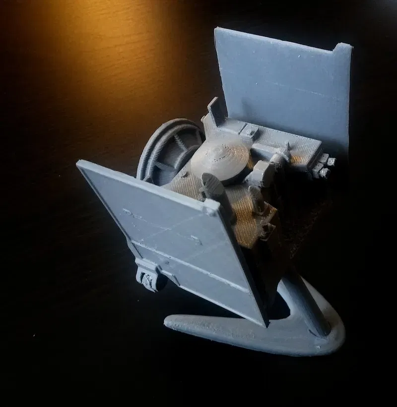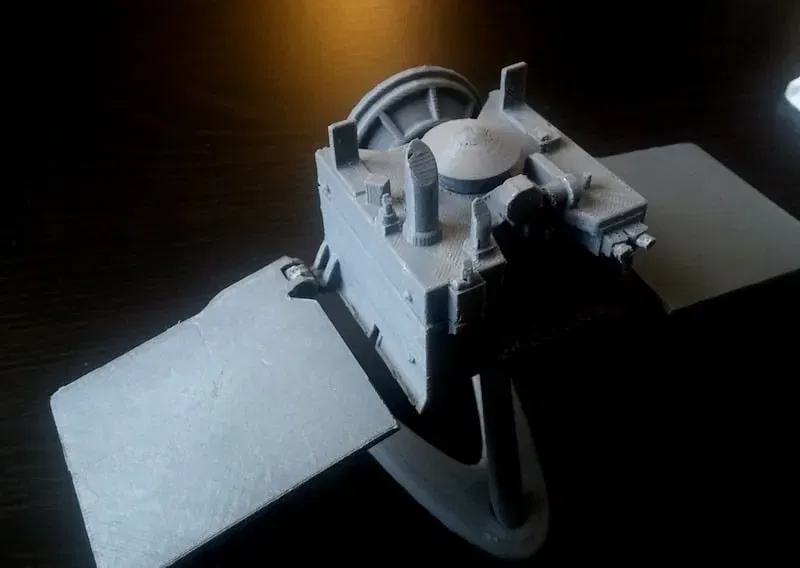 Đây là một thiết kế nguyên bản từ đầu, mô phỏng tàu vũ trụ theo cách để làm cho nó có thể in 3D. Vì các tàu thăm dò không gian có nhiều thứ nhô ra ở tất cả các góc độ, việc thiết kế và in chúng là rất khó khăn. Quy tắc của tôi là chúng nên vừa trong lòng bàn tay, vì vậy việc làm cho kích thước các tính năng hoạt động trong một mô hình nhỏ có thể khó khăn. Do đó, có một lượng giấy phép nghệ thuật nhất định được sử dụng. Mặc dù nó không hoàn toàn theo tỷ lệ, nhưng nó trung thành đại diện cho các tỷ lệ của hầu hết các thiết bị nổi bật trên tàu, và trông đẹp trên bàn làm việc của bạn trong khi làm điều đó.