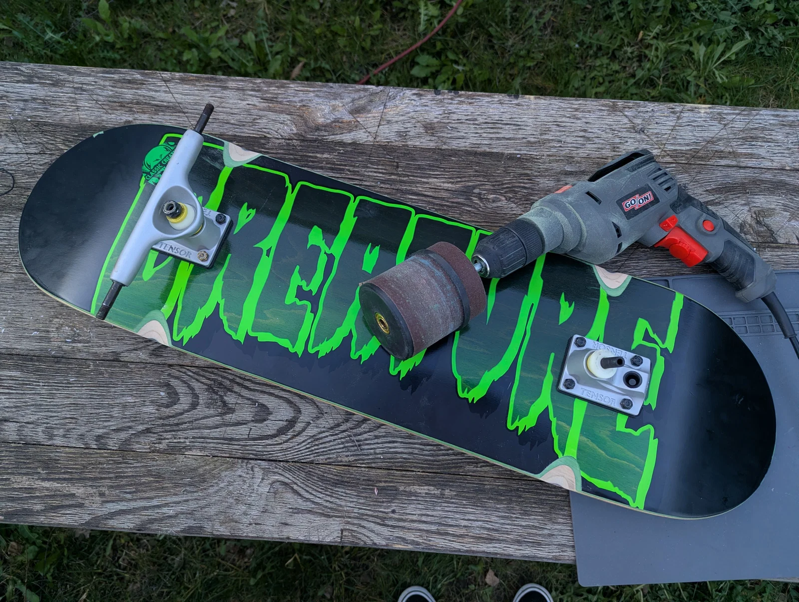 Đây là một dụng cụ hỗ trợ tạo hốc bánh xe (wheel wells) hoàn hảo cho bất kỳ ván trượt nào chỉ trong vài phút. Dụng cụ này được gắn vào trục (truck) và cho phép kết nối với máy khoan ở phía bên kia.