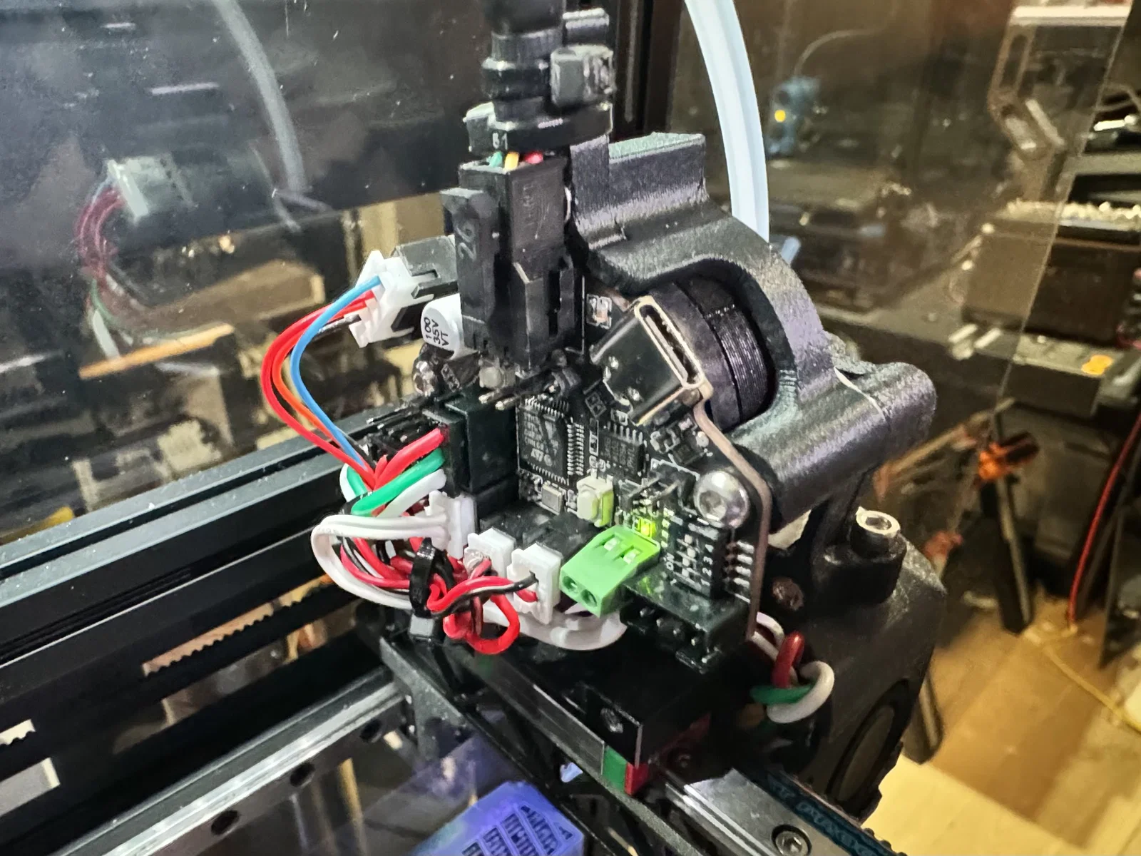 Trong lúc đang 'tút' lại phần extruder trên con Dragonburner cho chiếc Voron 0.2 của mình (hình như tháng nào cũng làm vậy), mình quyết định đổi sang dùng Sherpa Mini extruder. Mình nhận ra cần phải có một cái ngàm để gắn board BTT EBB36 v1.2 lên đó, đồng thời phải có chỗ để cố định dây CANbus umbilical. Điều này làm mình nhớ đến cái ngàm rất xịn cho Orbiter 2.0 mà mình từng dùng trước đây, thiết kế bởi @niefachowy, dùng cực kỳ ngon lành. Thế là mình 'làm lại' nó từ đầu để khớp với Sherpa Mini extruder. Danh sách linh kiện (BOM): 5x heat insert kiểu 'Voron' (M3x4x5) 2x M3x14 BHCS. Cần dài hơn một chút so với ốc giữ motor vào Sherpa để nó dư ra khỏi phần 'tai' của stepper. Bạn có thể cần điều chỉnh tùy theo tình hình thực tế. 2x M3x8 SHCS. Dùng để gắn EBB vào ngàm. 1x M3x8 FHCS. Dùng để bắt phần 'cổ' giữ dây umbilical vào ngàm chính. * 2x dây rút để cố định dây umbilical vào phần cổ. Bạn nên in bằng các loại nhựa chịu nhiệt như ABS hoặc ASA, có thể dùng loại có pha sợi carbon (CF) hay sợi thủy tinh (GF). Thiết lập in khuyến nghị: 3 walls, 3 lớp top/bottom, và 20% infill. Với mình thì không cần cài đặt gì đặc biệt, nhưng tùy máy bạn mà có thể điều chỉnh thêm nhé.