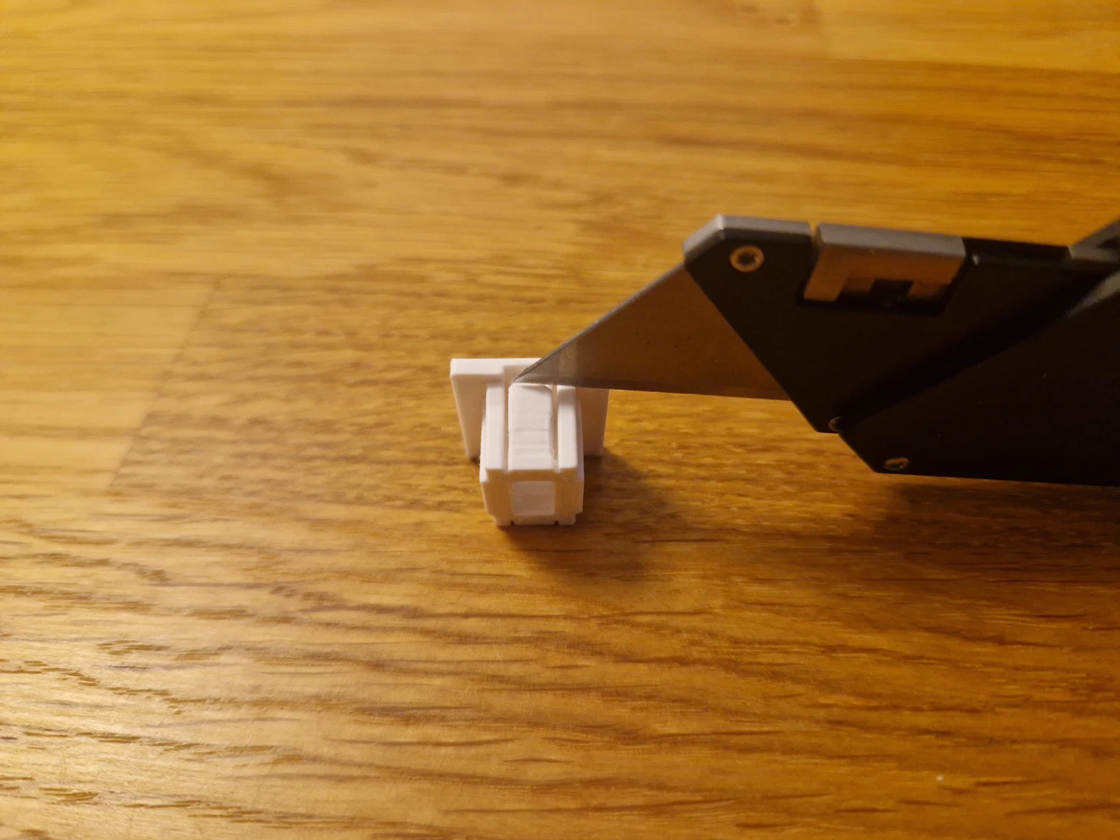 Lẫy giữ là một phần 'lò xo' mỏng. Phần gờ là phần nhô ra không có hỗ trợ. Đừng dùng support ở đây, cứ để nó võng xuống một chút rồi dùng dao gọt lại sau khi in (cid:image_4). Để tháo kẹp ra khỏi tấm kim loại, hãy dùng tua vít dẹt ấn mạnh vào khe rãnh nhìn thấy ở mặt cạnh ngắn (cid:image_5). Cách này sẽ làm gãy lẫy theo đường layer và tháo được kẹp ra. Kẹp sẽ bị hỏng sau khi tháo.