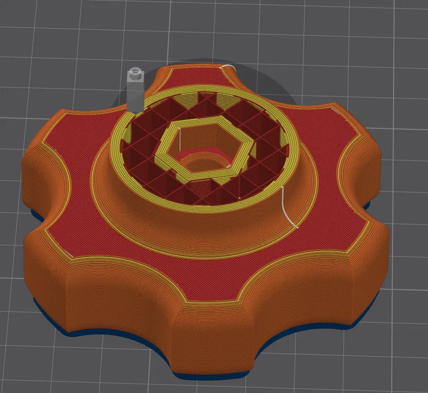 Mô hình tay vặn 80mm cho ốc M8. Trong quá trình in cần tạm dừng để chèn con tán vào bên trong. Thời gian in dự kiến từ 1.2 đến 2 giờ. Không thay đổi kích thước khi in để đảm bảo độ chính xác.