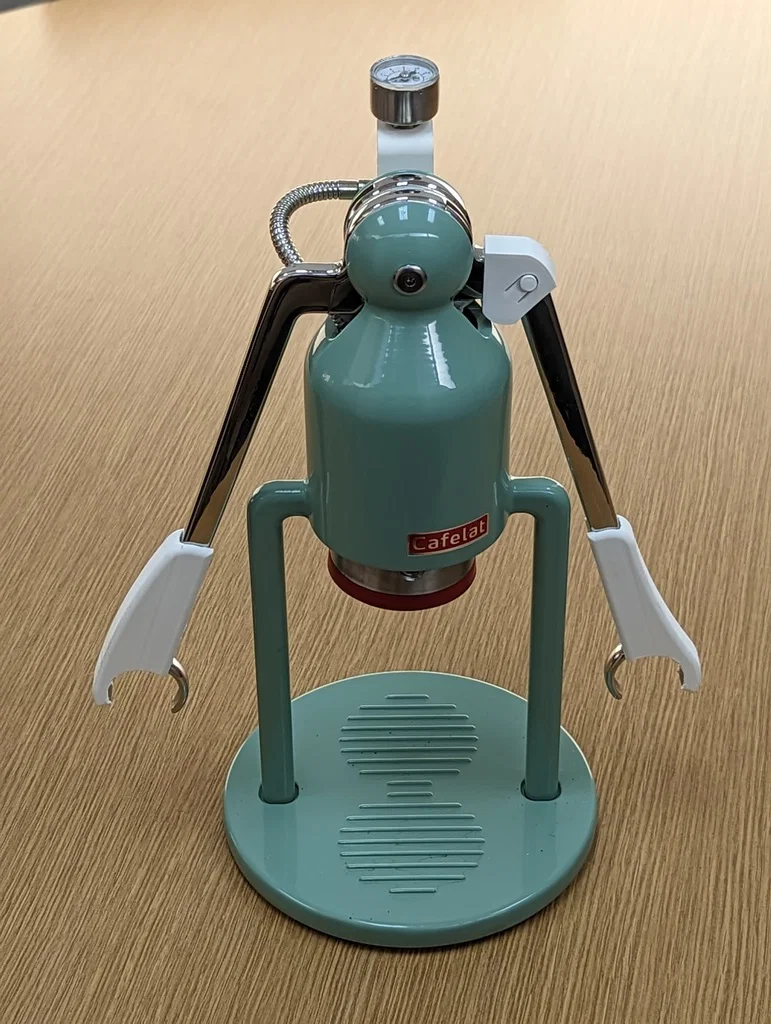Đây là một phụ kiện hữu ích giúp tăng sự thoải mái cho đôi tay khi bạn pha cà phê bằng máy Cafelat Robot. Thiết kế này giúp giảm áp lực và hỗ trợ thao tác ép cà phê dễ dàng hơn. Bạn có thể tự in phụ kiện này tại nhà với các thiết lập đơn giản.