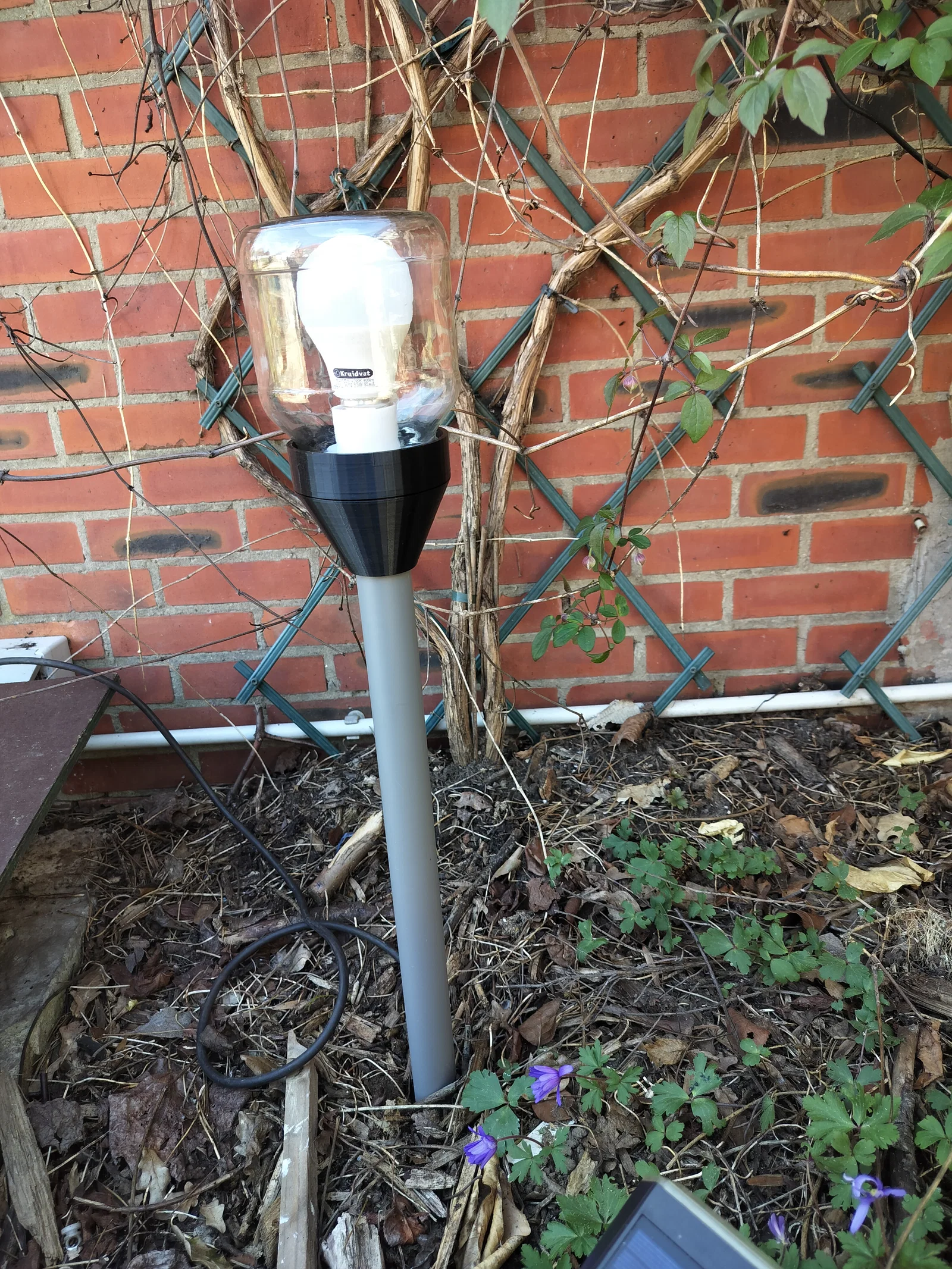 Đây là mẫu đèn sân vườn được tận dụng từ các vật liệu tái chế kết hợp với một vài linh kiện in 3D.