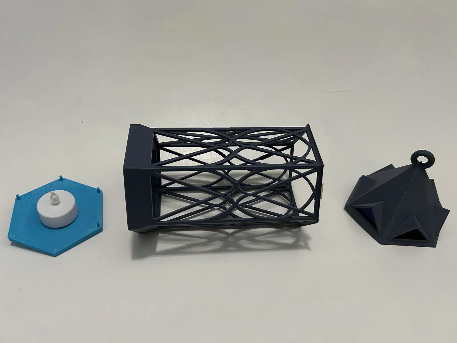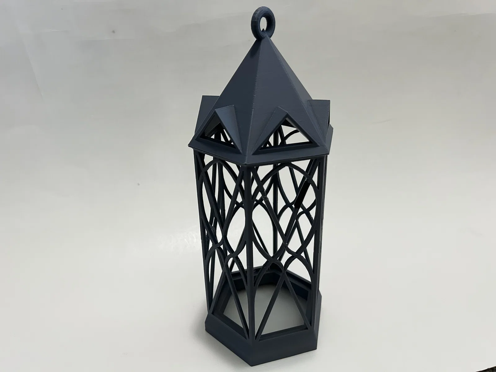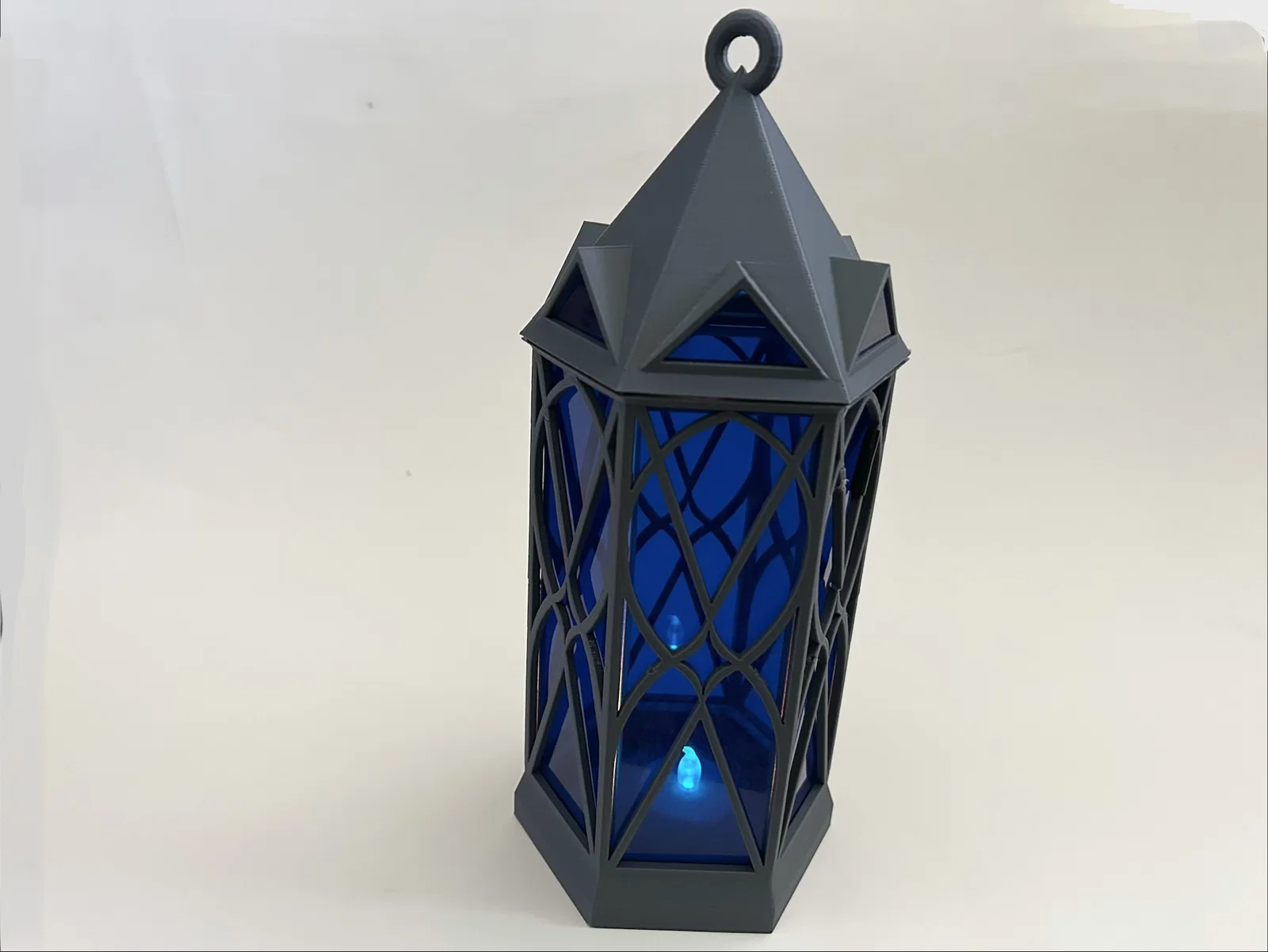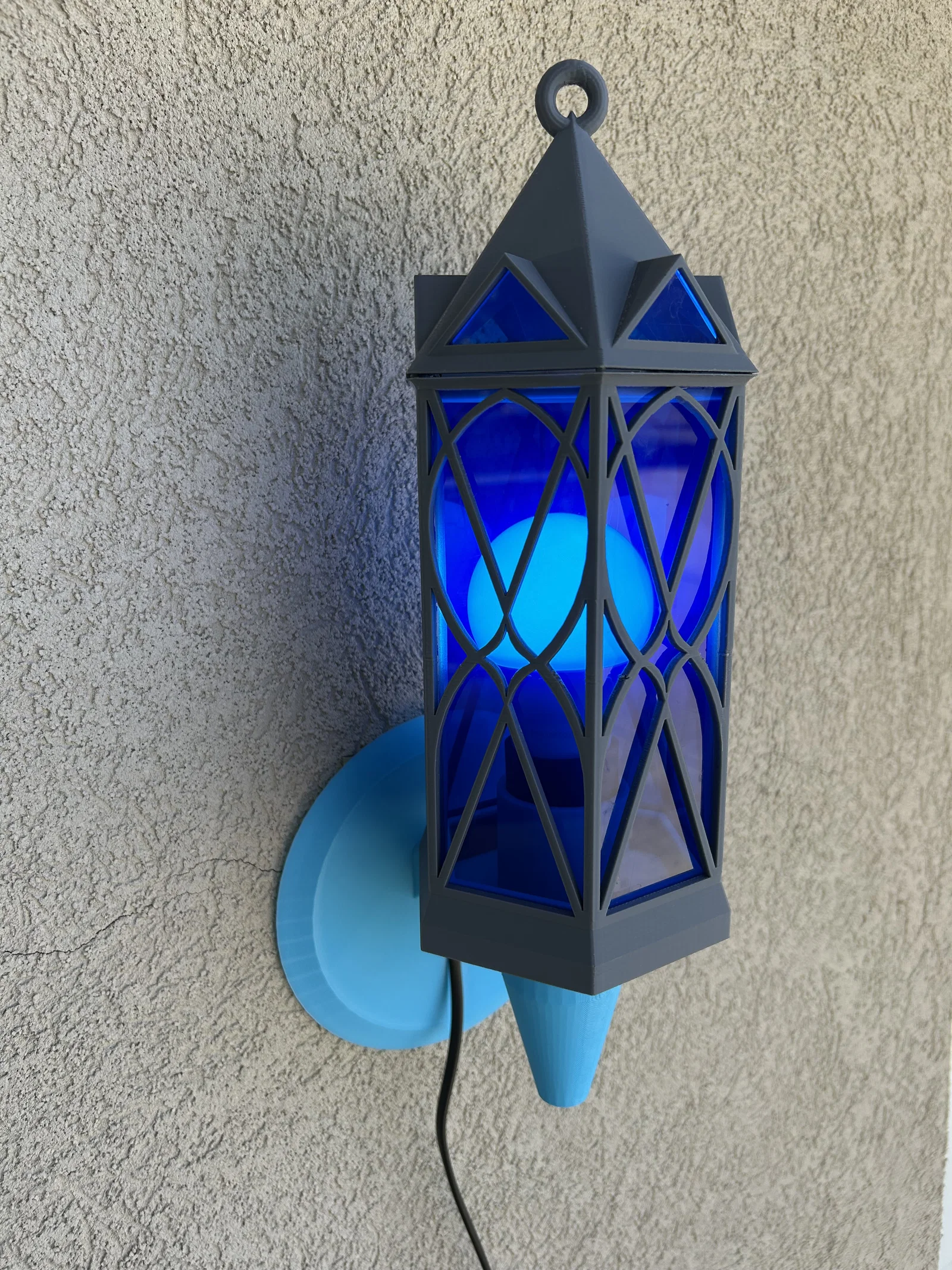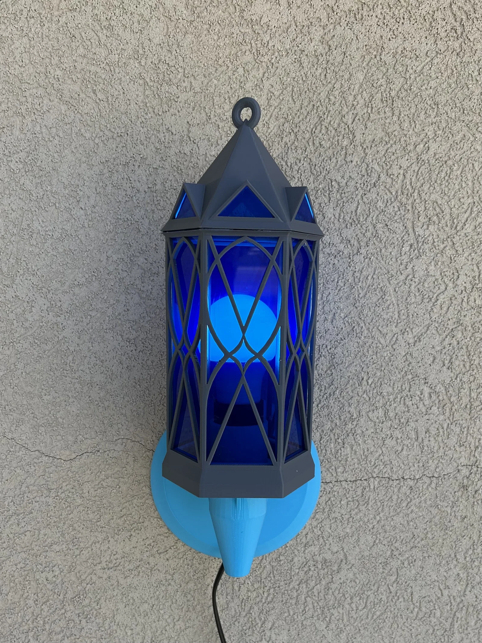 Cái đèn lồng này đi kèm với một giá treo tường, một miếng đế thay thế và một tay cầm dạng vòng. Giá treo tường được thiết kế để vừa với đuôi đèn có đường kính 1.4 inch. Đây là loại mình đã sử dụng: https://www.amazon.com/Rextin-extension-Pendant-Lighting-Restaurant/dp/B08GKKY799?th=1. Bản thân chiếc đèn lồng được chia thành hai phần để bạn có thể chèn phần "kính" vào (mình dùng tấm mica dày 0.125 inch). Mình đã in hai miếng lục giác để cố định tấm mica. Bạn có thể dán keo cũng được, nhưng mình thích kiểu tháo rời ra được hơn. Ngoài ra, hãy nhớ kiểm tra phần đáy xem có bị quá chật không trước khi dán cố định phần trên, nếu không bạn sẽ không tháo ra được đâu nhé.