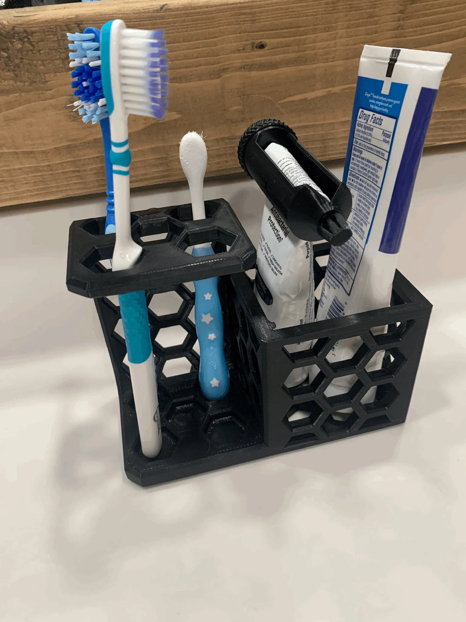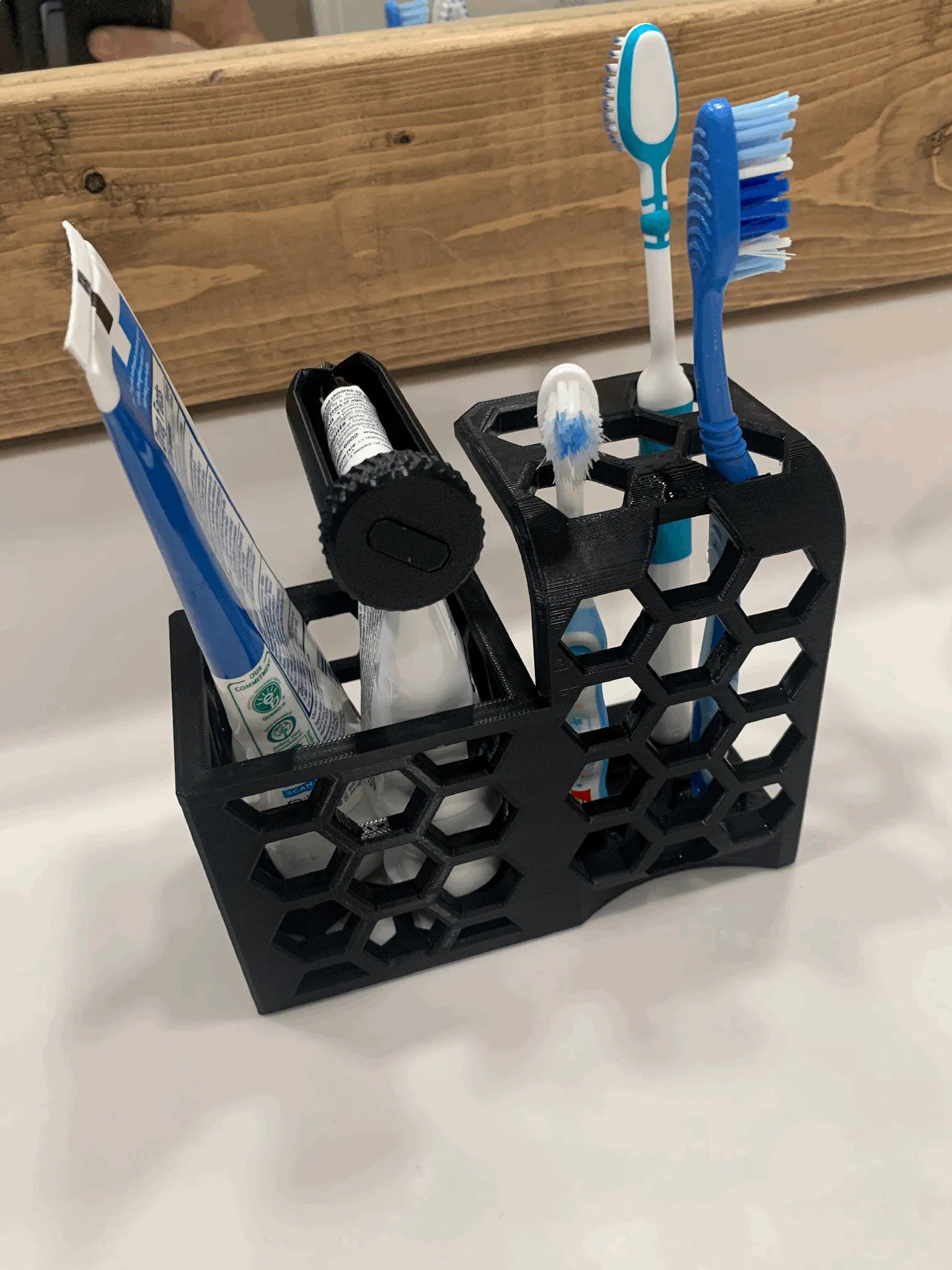 Đây là một bản remix của giá đỡ bàn chải đánh răng hình tổ ong mà tôi tìm thấy trên yeggi. Tôi đã thêm một ngăn bên cạnh để chứa kem đánh răng.