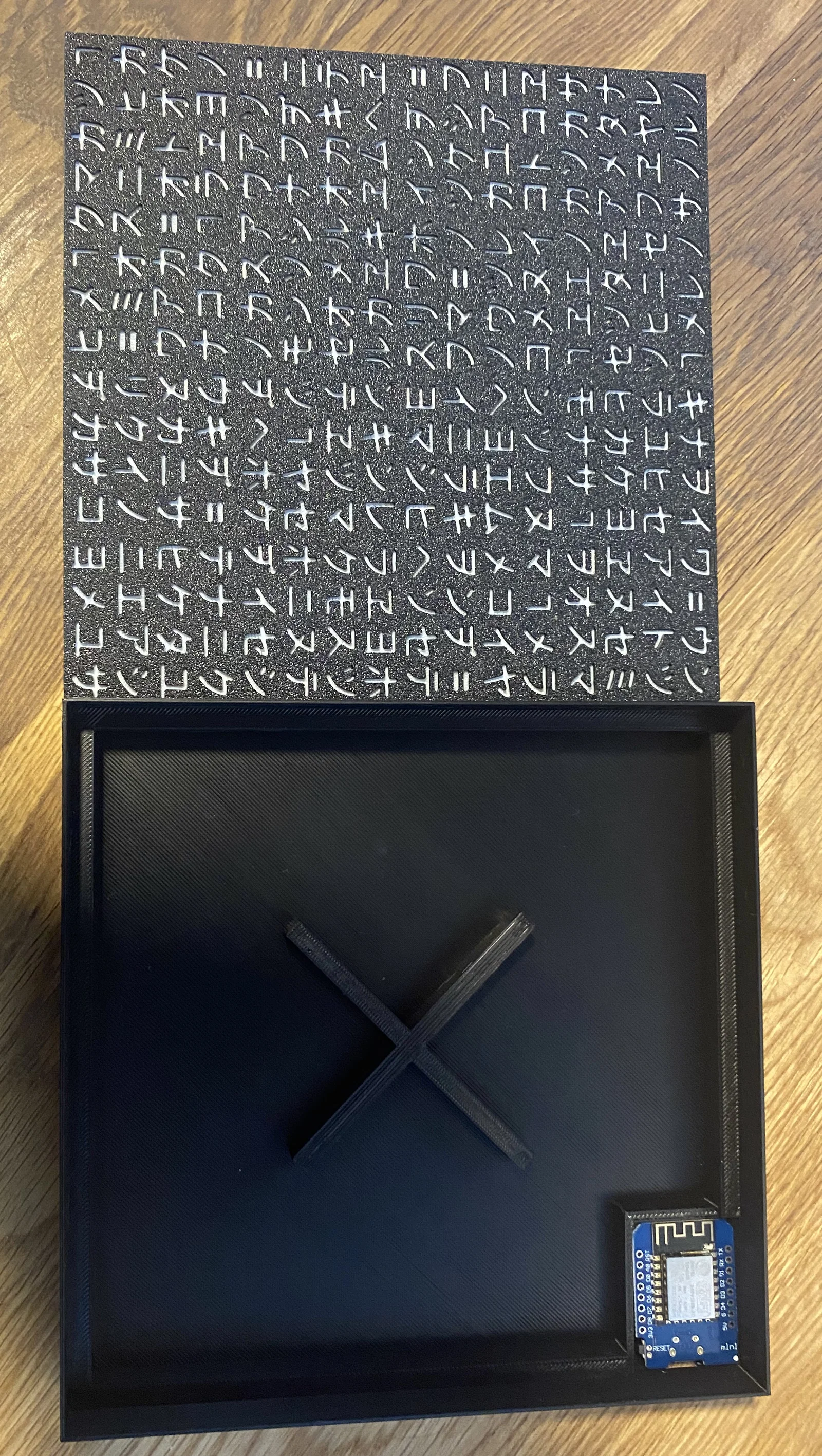 Phần nắp lưng được thiết kế rộng rãi, vừa vặn để lắp một em Wemos D1 ESP8622 mini cài WLED (chọn hiệu ứng matrix) hoặc dùng ESP32 micro đều ổn.