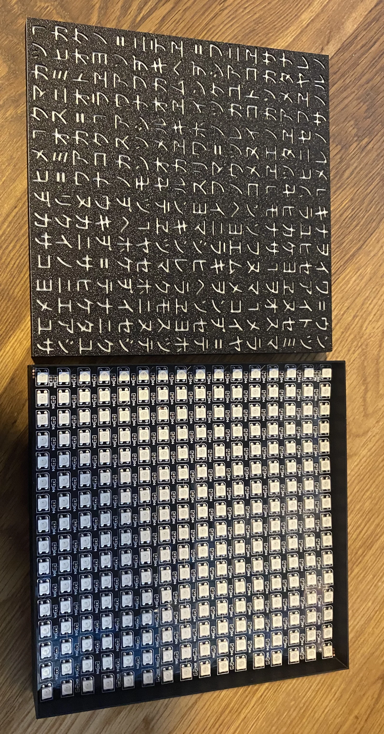 Mẫu Matrix Pixel Rain với phần gạch, tấm tán sáng và lưới được in liền một khối, giúp lắp ráp dễ dàng hơn và hạn chế tối đa tình trạng lọt sáng. Tương thích tốt với các dòng board ESP8266/ESP32 để chạy hiệu ứng WLED bắt mắt.