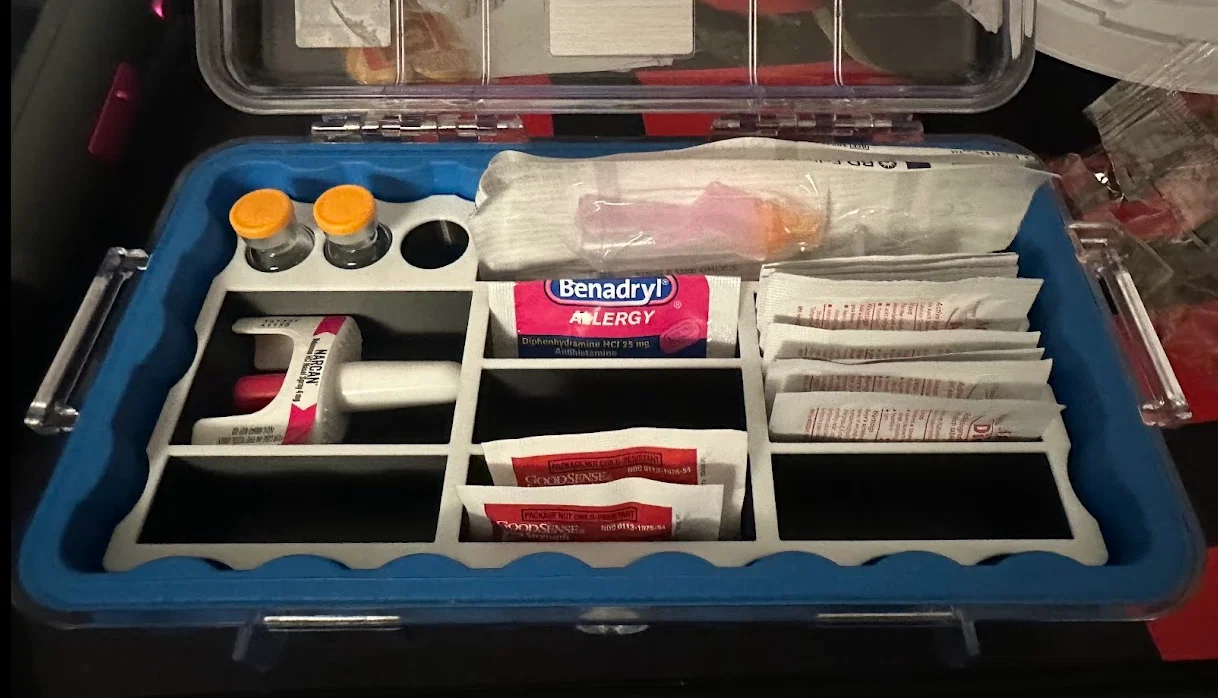 Bạn đang tìm cách sắp xếp các loại thuốc và vật dụng y tế trong chiếc hộp Pelican 1060 của mình? Mẫu thiết kế khay 3D này chính là giải pháp tối ưu dành cho bạn. Được thiết kế chuyên biệt để vừa khít với không gian bên trong Pelican 1060, khay giúp bạn phân loại ngăn nắp 3 lọ thuốc 5mL, kim tiêm, thiết bị Narcan cùng nhiều vỉ thuốc khác nhau. Sản phẩm này giúp tăng cường tính chuyên nghiệp và tốc độ thao tác trong các tình huống sơ cứu khẩn cấp. Với cấu trúc vững chắc, khay giữ cho các vật dụng y tế luôn cố định, tránh va đập hư hỏng khi di chuyển. Đây là phụ kiện không thể thiếu cho các bộ kit y tế dã ngoại hoặc chuyên nghiệp.