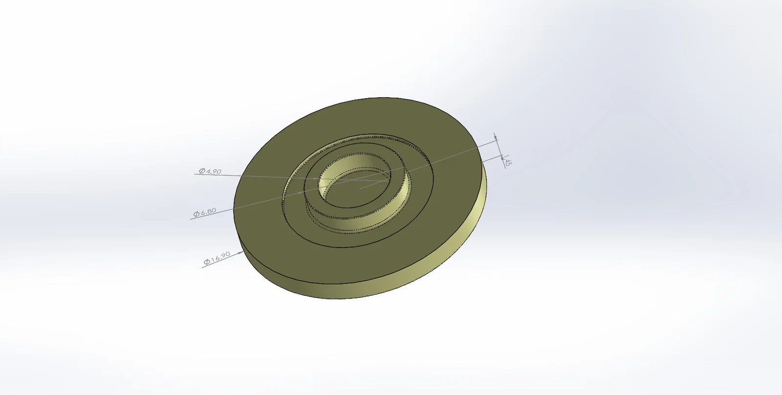 - Cấu trúc thiết kế: Model có đường kính ngoài 16.9mm, đường kính gờ 6.8mm và lõi 4.9mm, bạn nên kiểm tra kỹ kích thước lỗ trên máy trước khi in.