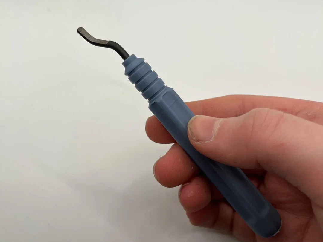 Một dụng cụ gọt bavia (deburr tool) nhỏ gọn, đơn giản, sử dụng các loại lưỡi dao tiêu chuẩn (3mm). Thiết kế này được in kèm một viên nam châm bên trong để giữ cố định lưỡi dao. Bạn cần tạm dừng máy in (tại layer 332) để chèn nam châm vào. Kích thước nam châm mình sử dụng là 4x2mm.