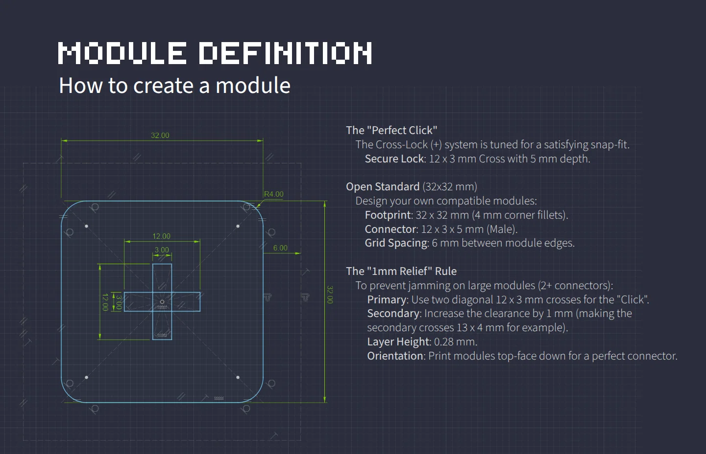 "Bí mật" nằm ở cơ chế kết nối Cross-Lock (+). Tôi không muốn dùng nam châm hay ốc vít vì nó quá rắc rối. Thay vào đó, tôi đã tinh chỉnh các dung sai (tolerances) để đạt được độ ma sát hoàn hảo:
