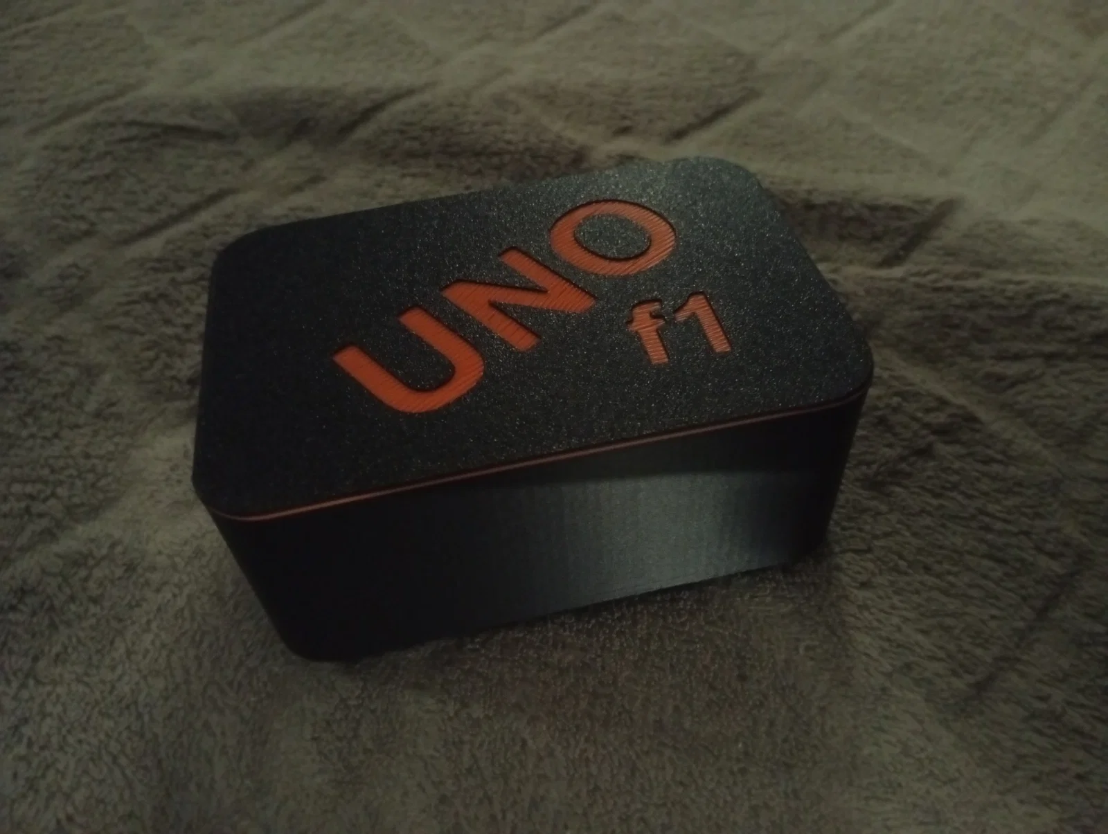 Sản phẩm này không chỉ là một chiếc hộp đựng thông thường mà còn là vật trang trí cực chất trên bàn chơi game. Phần nắp được khắc nổi chữ “UNO f1” vô cùng bắt mắt, tạo điểm nhấn mạnh mẽ đậm chất tốc độ. Việc sở hữu một chiếc hộp in 3D cá nhân hóa giúp bạn tách biệt hoàn toàn bộ bài của mình với bạn bè, đồng thời khẳng định phong cách riêng biệt của một người chơi yêu thích F1.