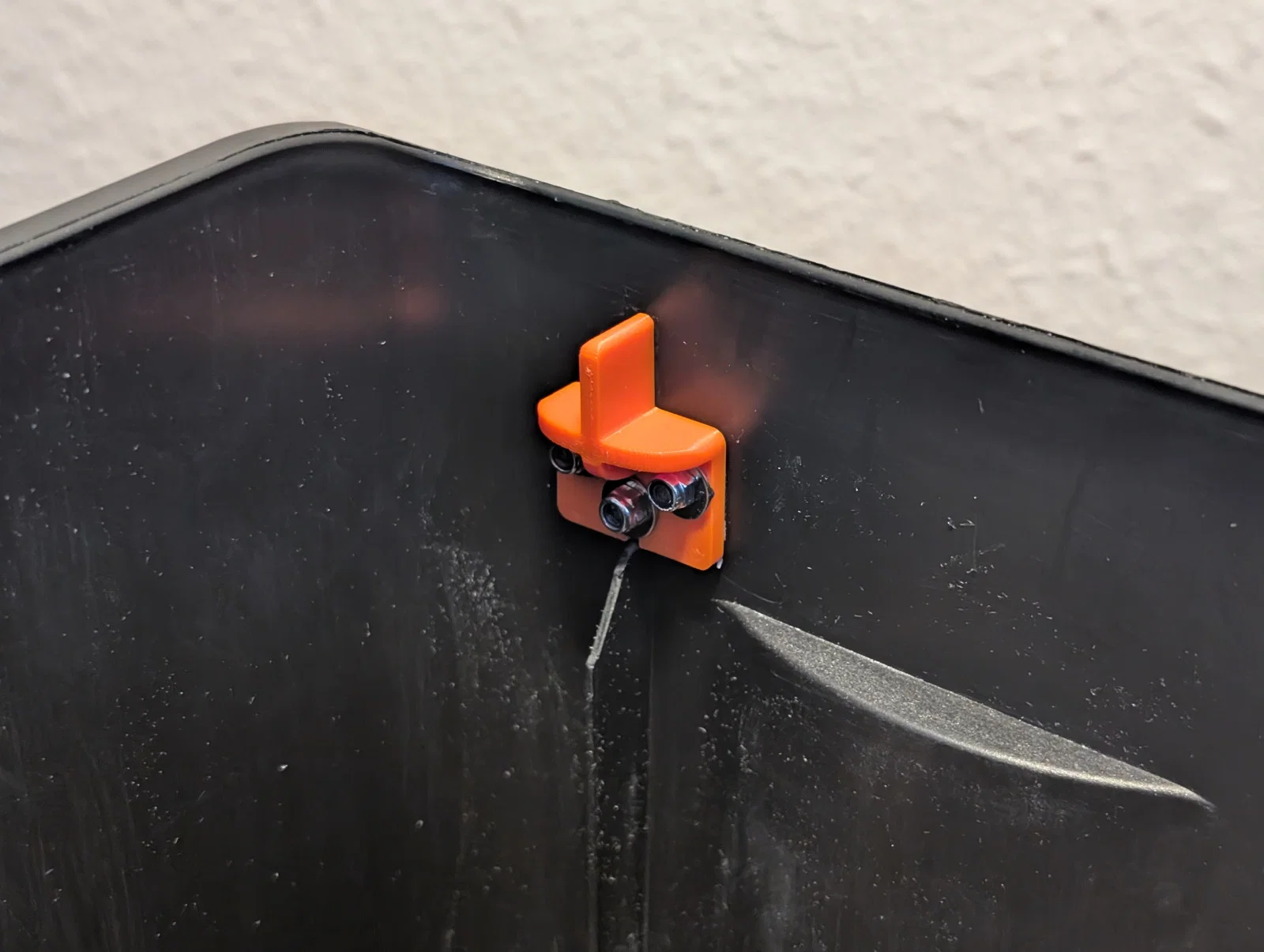 Khoan các lỗ đó rồi cố định linh kiện từ bên trong hộp chứa bằng ba con ốc M3.