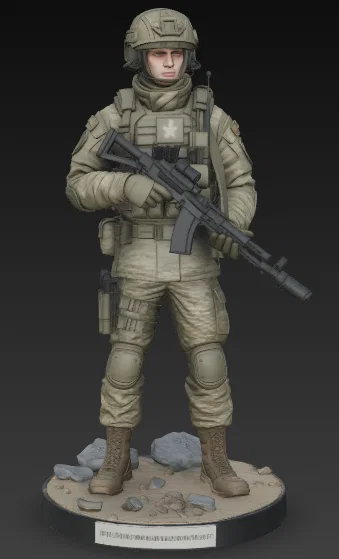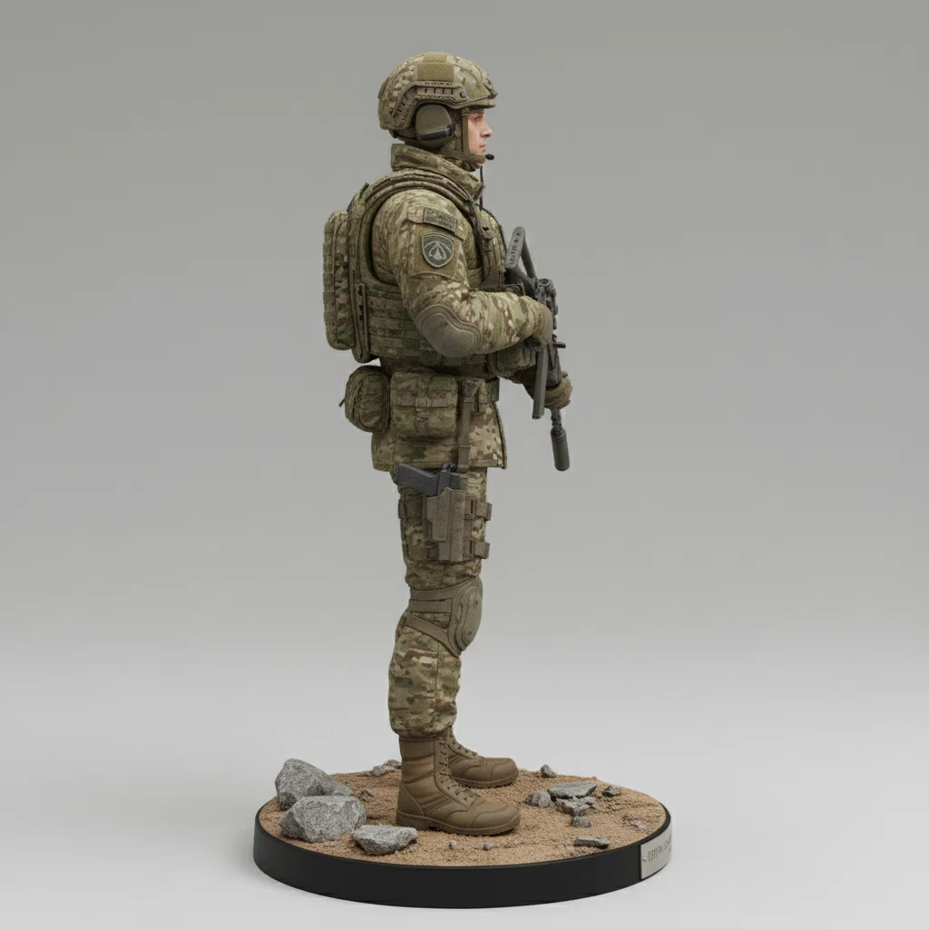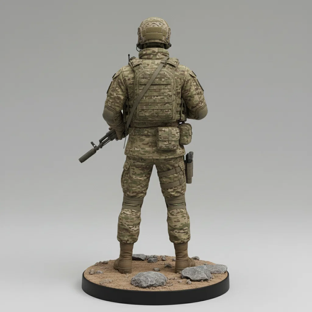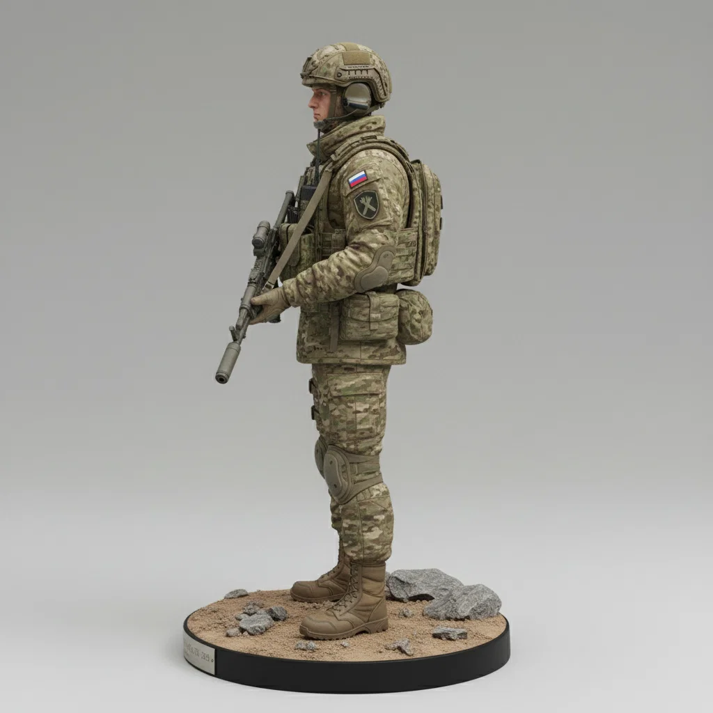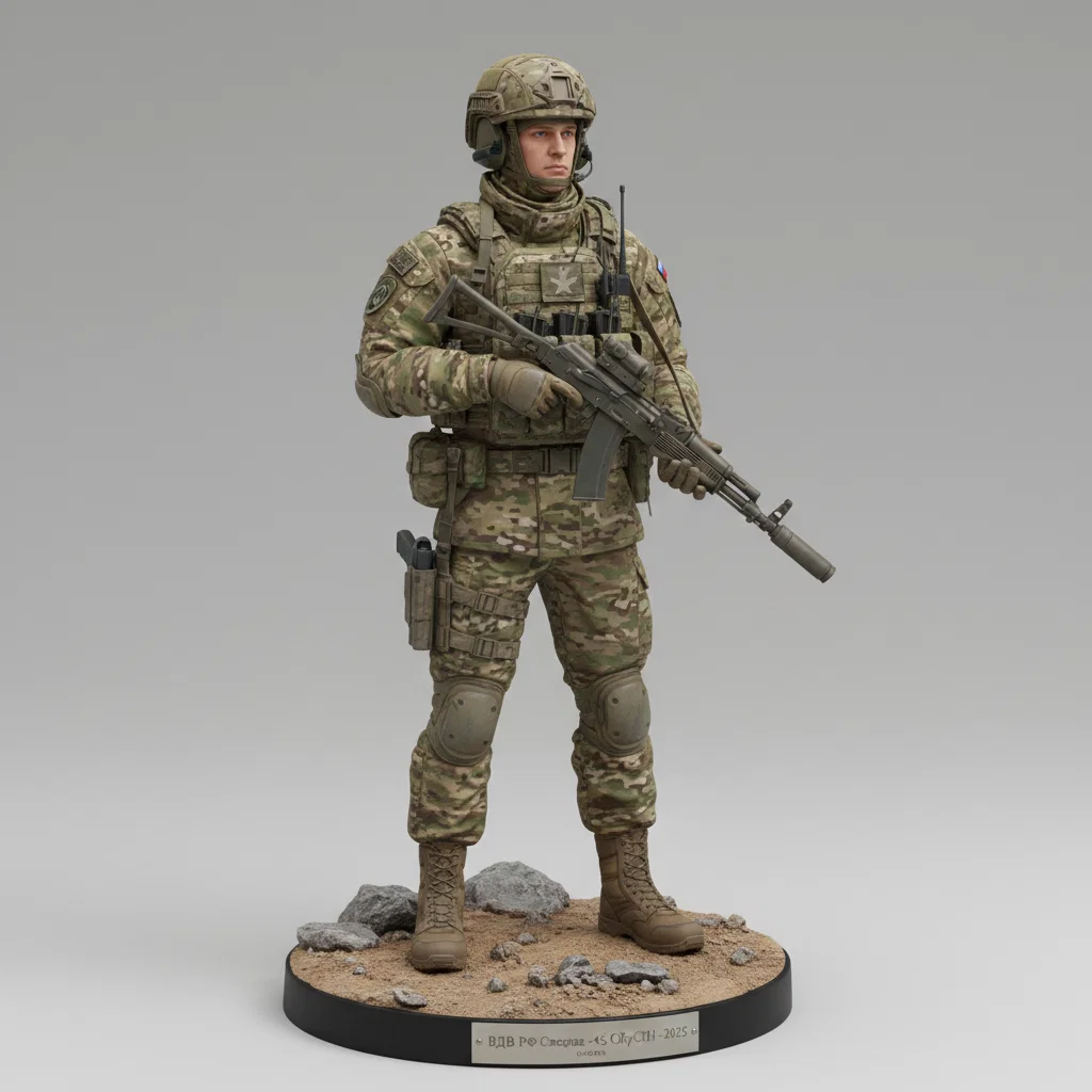 Mô hình 3D chi tiết cao của chiến sĩ đặc nhiệm Lữ đoàn 45 Lính dù Nga (VDV), dựa trên trang bị thực tế giai đoạn 2024-2025. Bao gồm đầy đủ giáp bảo vệ hiện đại, quân phục Multicam và súng trường AK-12K với độ hoàn thiện cực tốt cho in 3D.