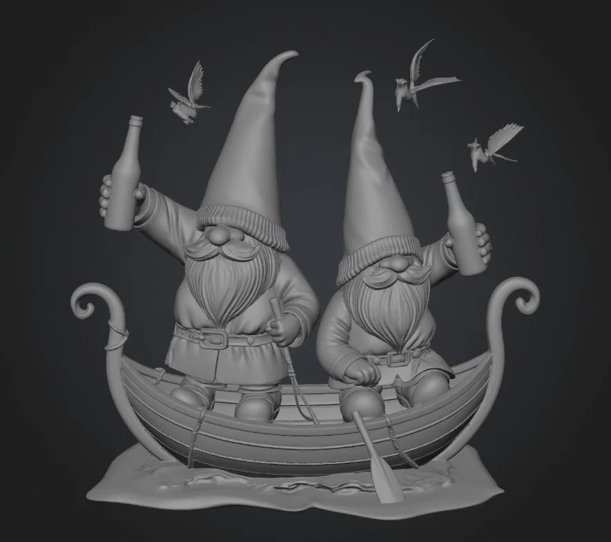 Nếu bạn là một người đam mê sưu tầm những món đồ trang trí nhỏ xinh và độc đáo thì chắc chắn không nên bỏ qua file 3D "Funny Beer Drinking Gnomes" này. Đây là mô hình hai chú lùn gnome với vẻ ngoài cực kỳ vui tính, đang cùng nhau ngồi trên một chiếc thuyền nhỏ và nâng ly bia ăn mừng. Thiết kế này mang đến cảm giác thư giãn, thoải mái, rất thích hợp để làm vật trang trí trên bàn làm việc, kệ sách hoặc góc chill trong nhà của bạn.