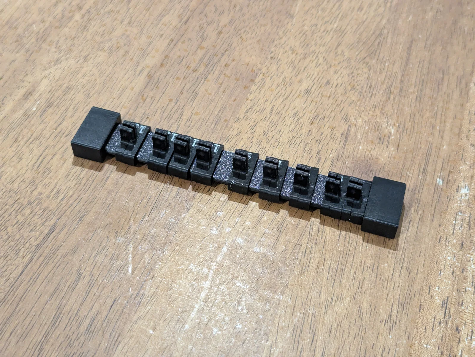 Thiết kế gốc của anh ấy là để dùng với thanh dẹt kích thước 3/4" x 1/8", nhưng mình nghĩ tiện thể in luôn thanh ray cho gọn, nên mình đã đính kèm thêm file thanh ray và các đầu bịt phù hợp với nó.