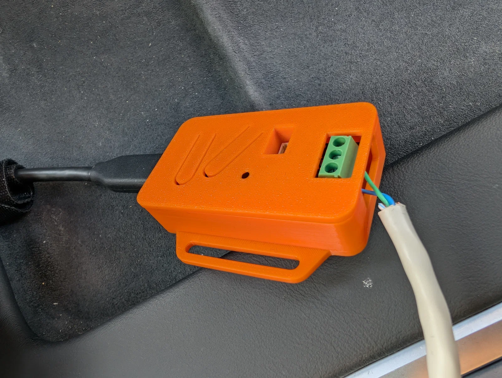 Thiết kế của hộp đựng rất thông minh với cơ chế lắp ráp dạng ngàm (snap-fit), cực kỳ tiện lợi cho việc lắp đặt hoặc tháo rời khi cần kiểm tra linh kiện mà không cần dùng đến ốc vít phức tạp. Các vị trí cổng kết nối đã được khoét chính xác, giúp anh em dễ dàng cắm cáp USB và kết nối dây tín hiệu vào cổng terminal của bo mạch mà không gặp bất cứ trở ngại nào. Ngoài ra, phần thân vỏ còn tích hợp sẵn ngàm gắn (mounting flange), hỗ trợ anh em bắt vít cố định lên bề mặt phẳng hoặc khung xe một cách dễ dàng và thẩm mỹ.