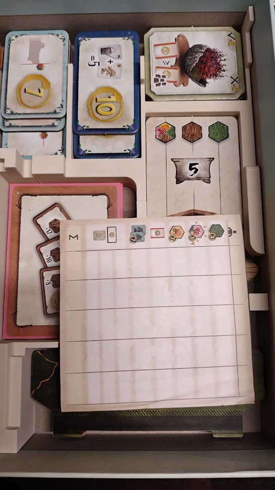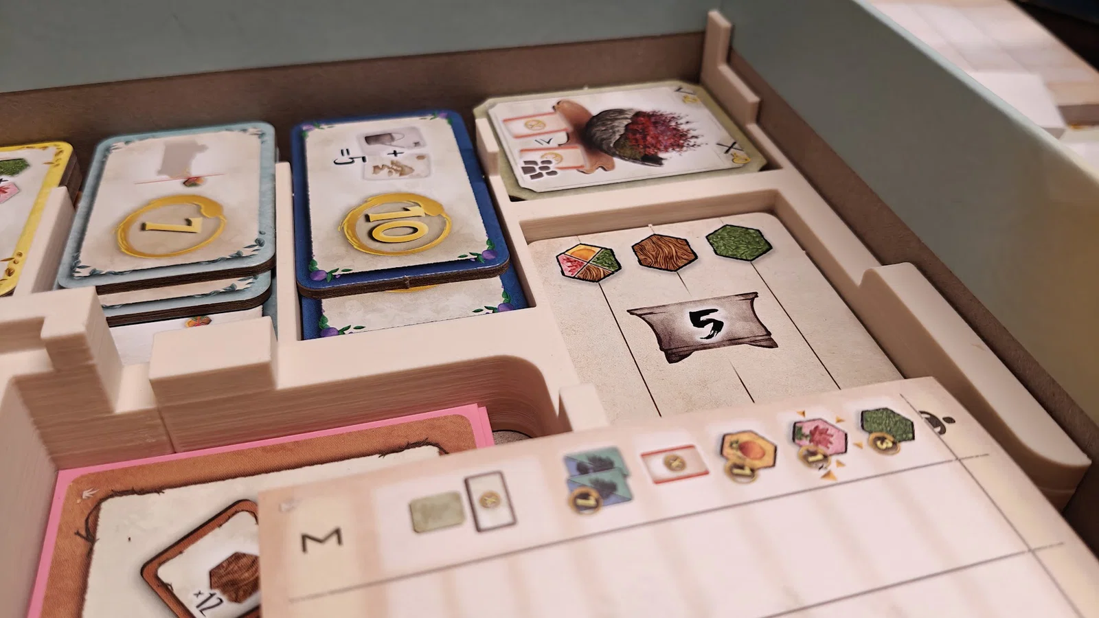 Khay đựng được thiết kế tối ưu cho board game Bonsai và bản mở rộng Wabi Sabi. Mình đã điều chỉnh kích thước khay, bổ sung standoffs để giữ bảng draft và tối ưu hóa thành khay để in ấn hiệu quả hơn.