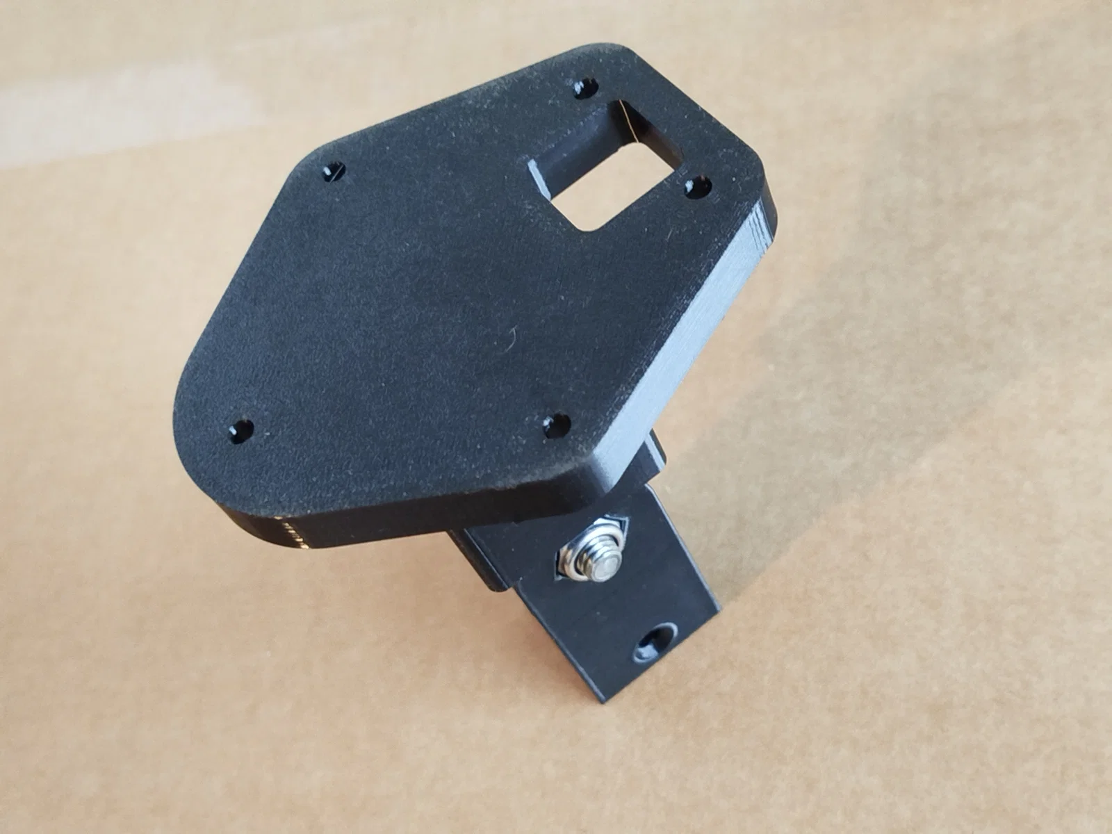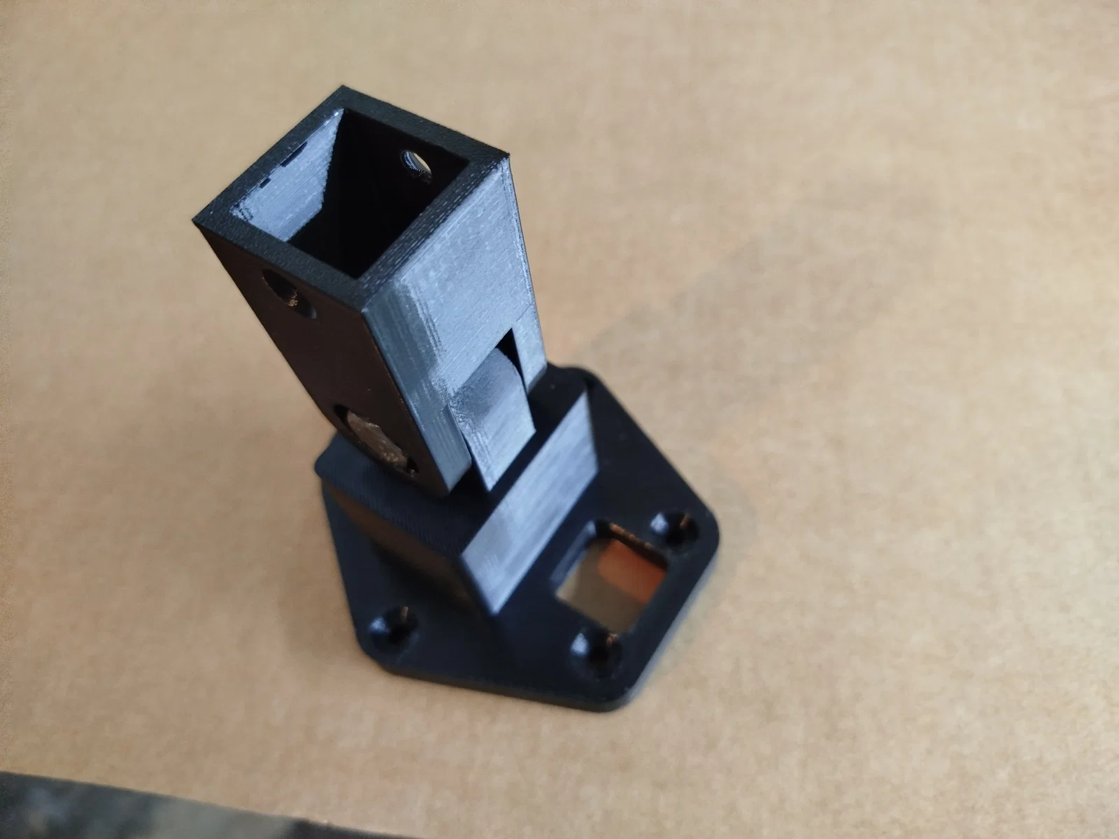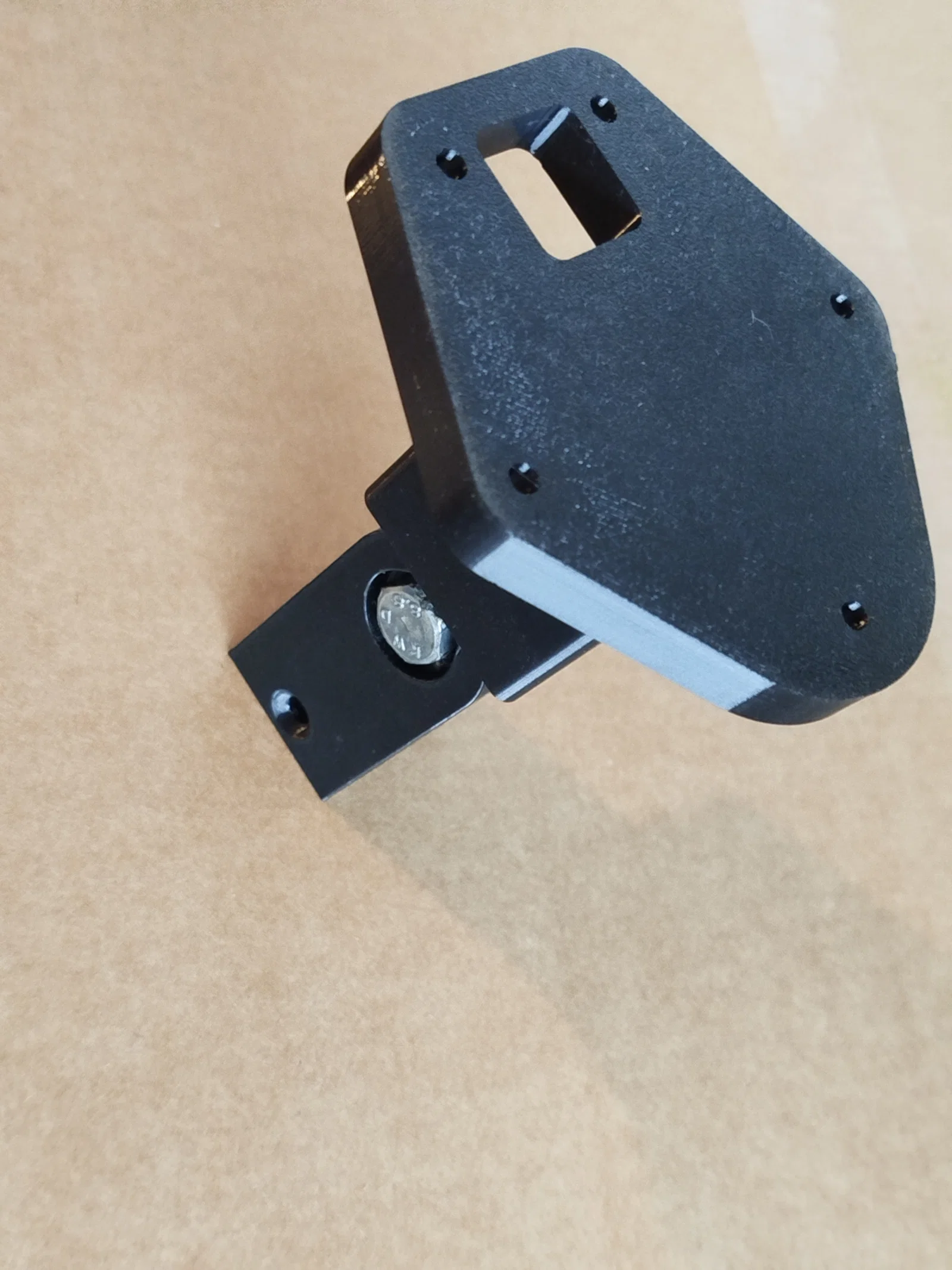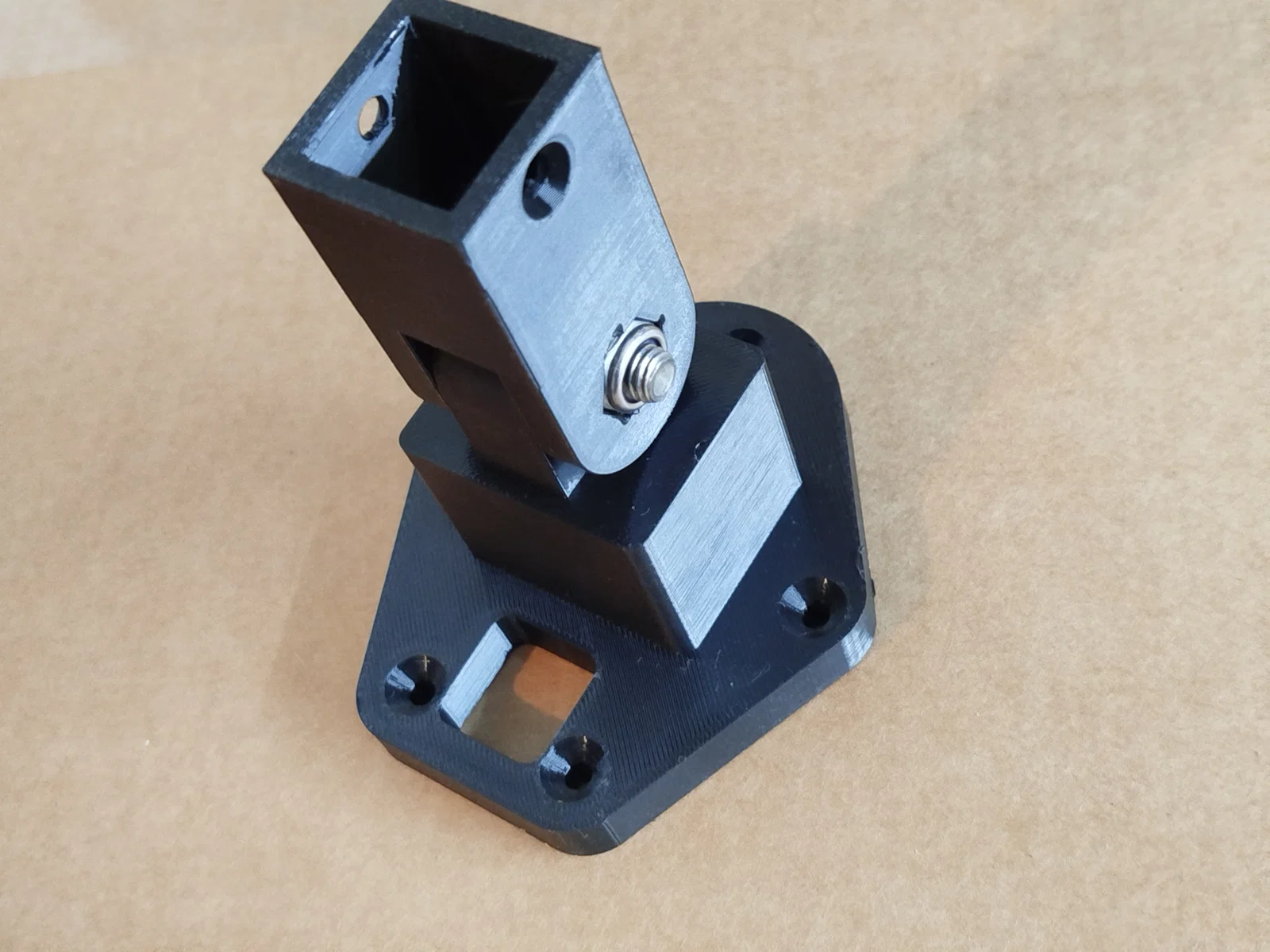 Bản lề này được thiết kế dành cho bàn xếp trong xe cắm trại (wohnmobil) có thể tháo rời. Nó được bắt vít vào phía trước bàn để làm chân đỡ. Mình đã thiết kế một hốc vuông 23mm, vì bạn có thể dễ dàng mua thanh gỗ sồi vuông 23mm dài 90cm tại các cửa hàng vật liệu xây dựng (Bauhaus). Các loại chân bàn bán sẵn thường tốn kém hơn so với việc dùng một đoạn gỗ sồi 23mm và một ít nhựa in 3D. Mình kết nối các bộ phận này bằng một con bu lông lục giác M8x30 và đai ốc tự khóa. Hốc dành cho đầu bu lông có đường kính 18mm để vừa với đầu tuýp (stecknuss) của bạn.