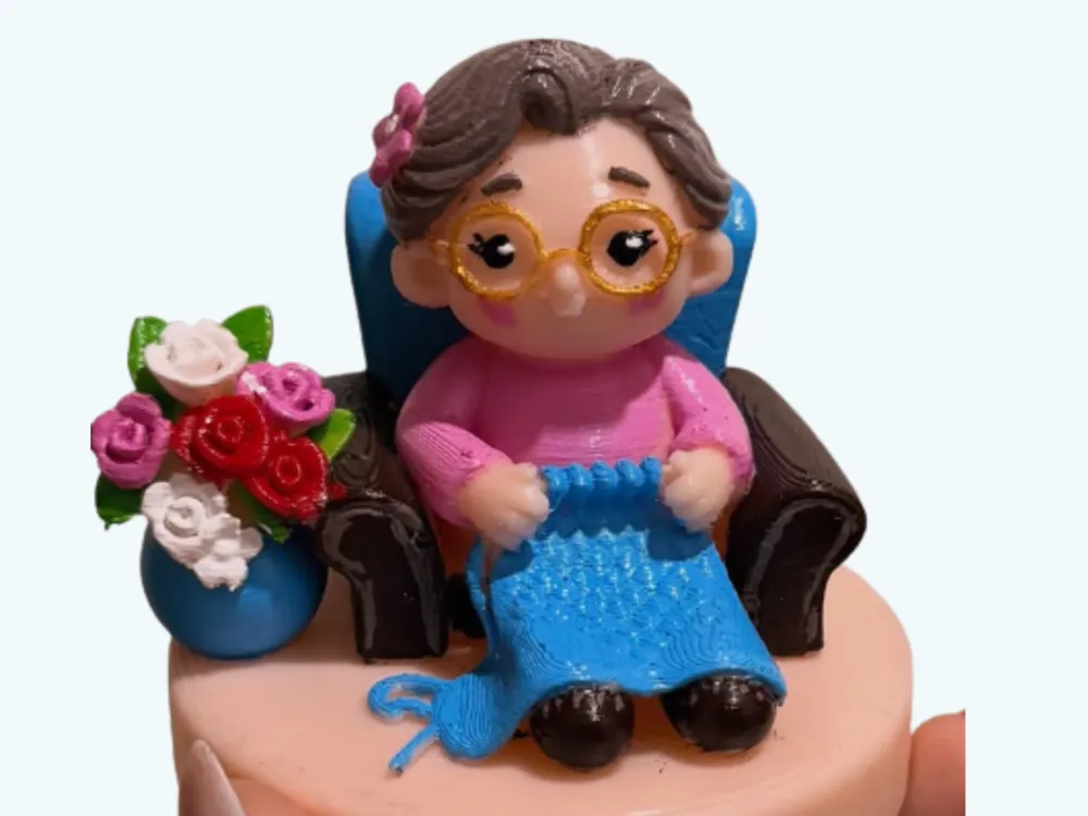 Mô hình 3D người bà đan len trang trí cực xinh xắn