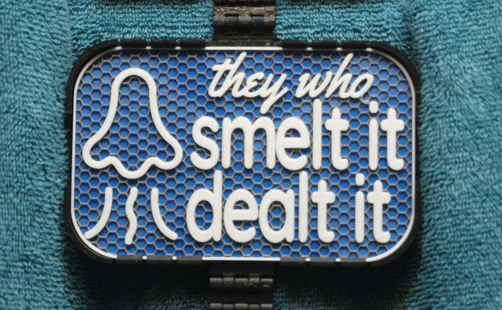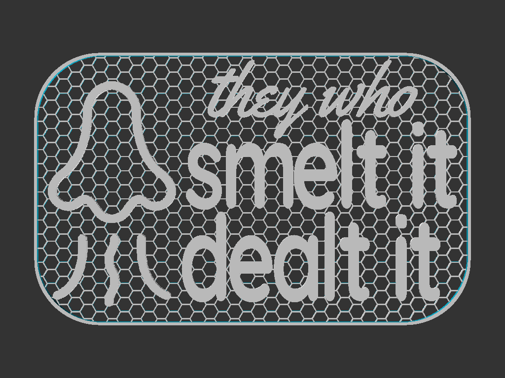 Bảng hiệu hài hước với dòng chữ "The who smelt it, dealt it" kích thước 100x160mm. Tệp in được cung cấp dưới dạng Mesh và Solid, tối ưu nhất khi đổi màu nhựa từ 1mm trở lên.