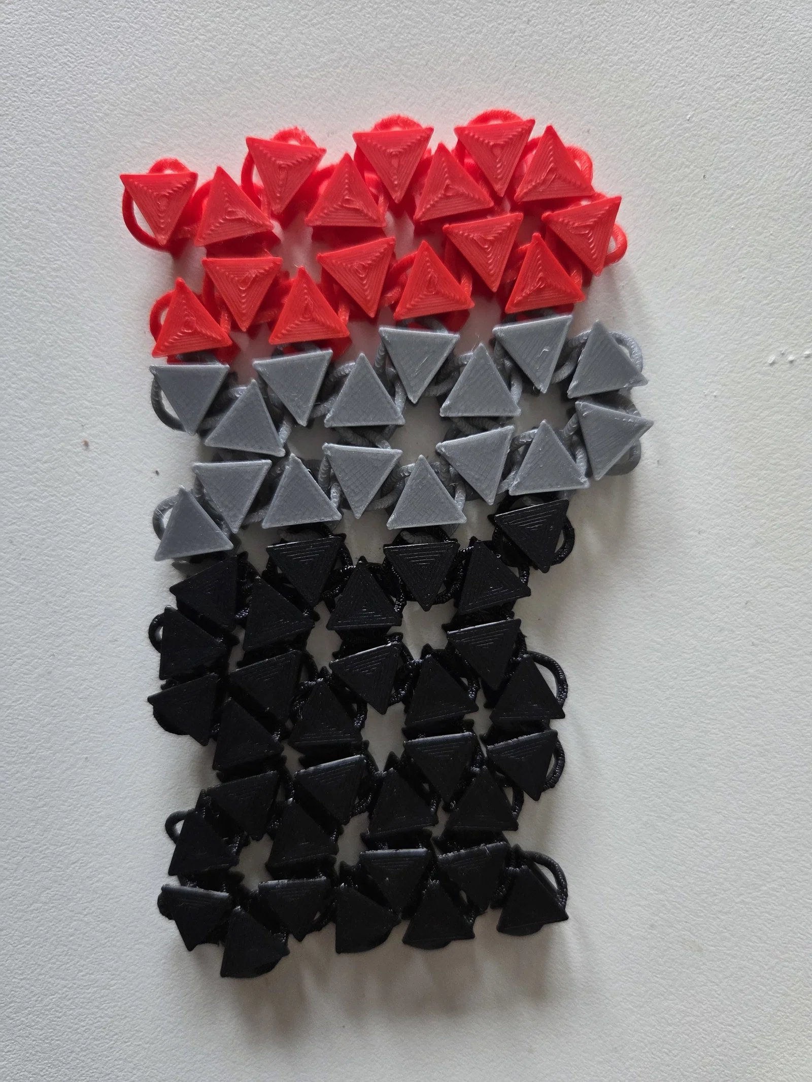 Khám phá mẫu vải tam giác "Nasa" độc đáo có thể kết nối linh hoạt, lý tưởng để làm xích giáp hoặc lưới trang trí. Tải ngay các file STL để tự in các mắt xích bền chắc với hướng dẫn in 0.2mm đơn giản, không cần hỗ trợ.