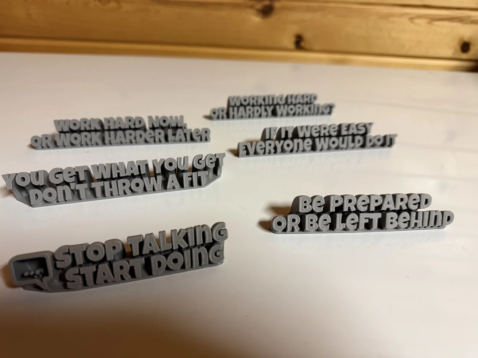 Bạn đang tìm kiếm một món phụ kiện trang trí nhỏ xinh nhưng đầy ý nghĩa cho góc làm việc của mình? Mẫu in 3D "Be Prepared, Or Be Left Behind" (tạm dịch: Hãy chuẩn bị kỹ càng hoặc sẽ bị bỏ lại phía sau) chính là lựa chọn hoàn hảo. Với thiết kế chữ nổi cách điệu, sản phẩm này không chỉ là một món đồ trang trí đơn thuần mà còn là lời nhắc nhở nhẹ nhàng giúp bạn giữ vững động lực và tinh thần làm việc tập trung mỗi ngày.
