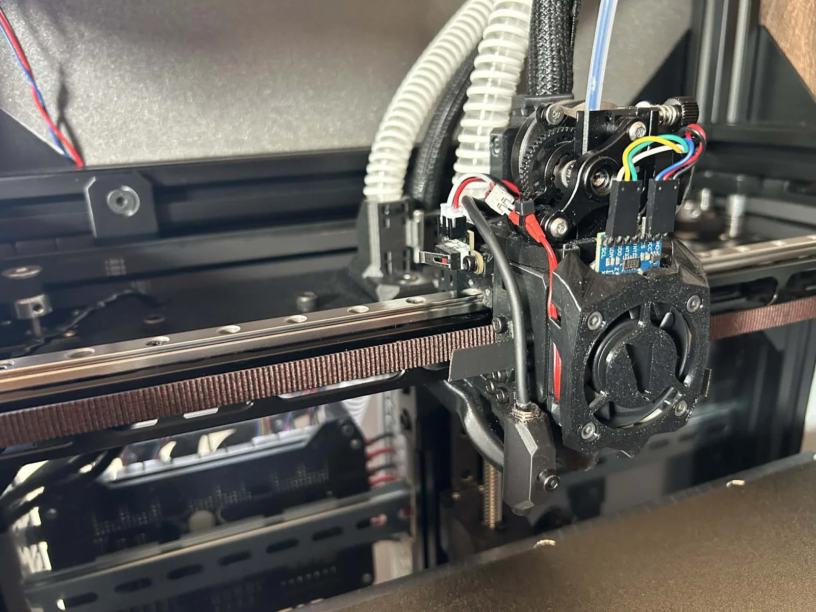 Mình đã căn chỉnh độ căng dây đai ở mức khoảng 60 Hz trên toàn bộ chiều dài dây đai trên máy RatRig V-Core 3.1 300 mm, tương đương khoảng 130 Hz trên đoạn 150 mm. Hiện tại mình vẫn dùng các puly trơn (smooth idlers) ở mặt có răng của dây đai. Nếu chuyển sang puly có răng (toothed idlers) thì có thể hiệu suất sẽ ngon hơn nữa, nhưng nhìn chung thì mình khá hài lòng với kết quả hiện tại.