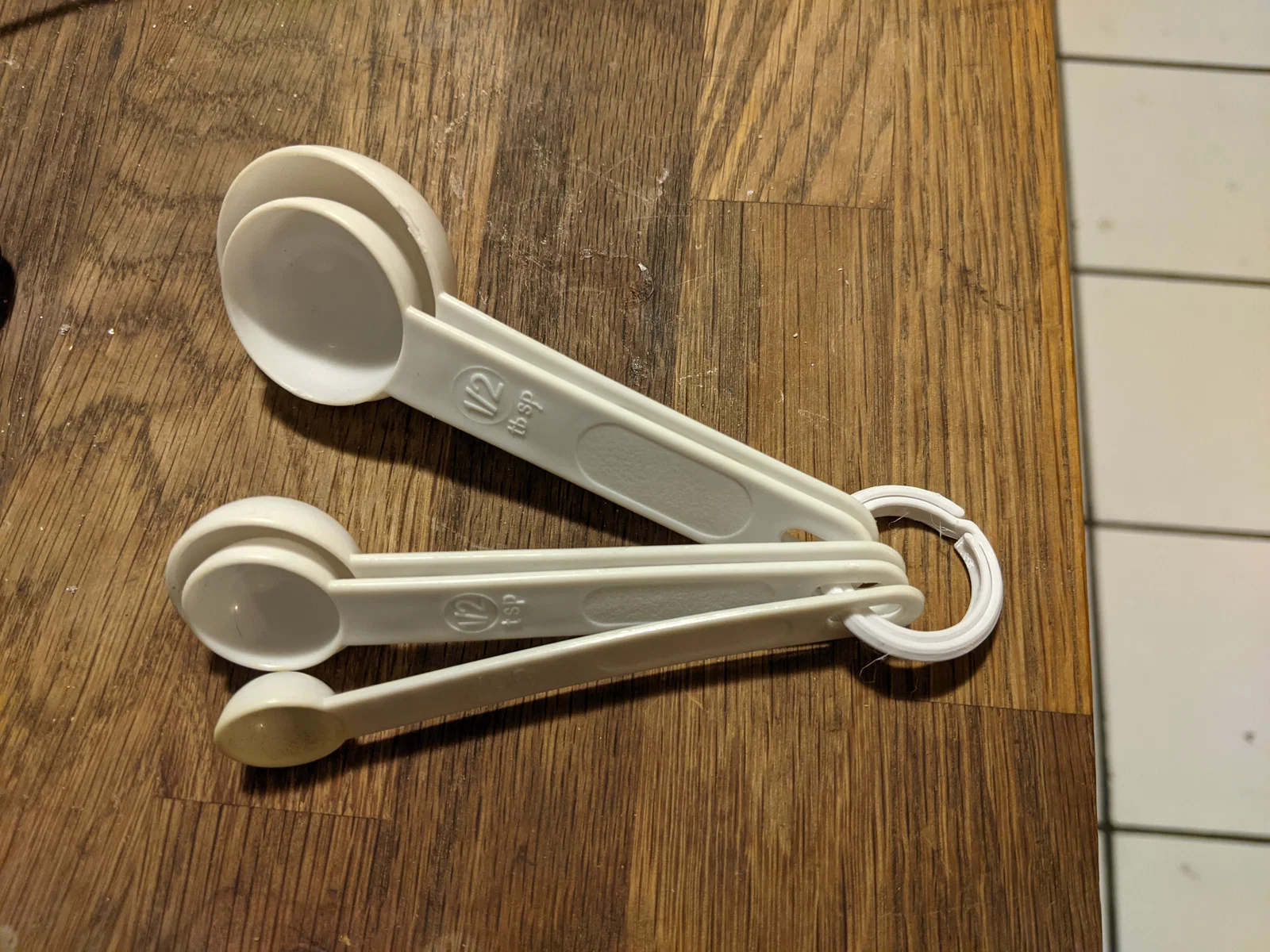 Được thiết kế trên Fusion 360. Mình đã in cái này bằng nhựa PETG. Đây là lựa chọn vật liệu rất tốt vì nó có độ dẻo dai nhất định (rất tiện khi bạn móc thêm đồ vào vòng) và chịu được nhiệt độ của máy rửa bát (điều mà mình cần cho bộ muỗng đong của mình). Thiết kế mặt cắt hình chữ V (chevron) hy vọng sẽ mang lại độ cứng cáp tốt hơn so với các loại mặt cắt phẳng thông thường.