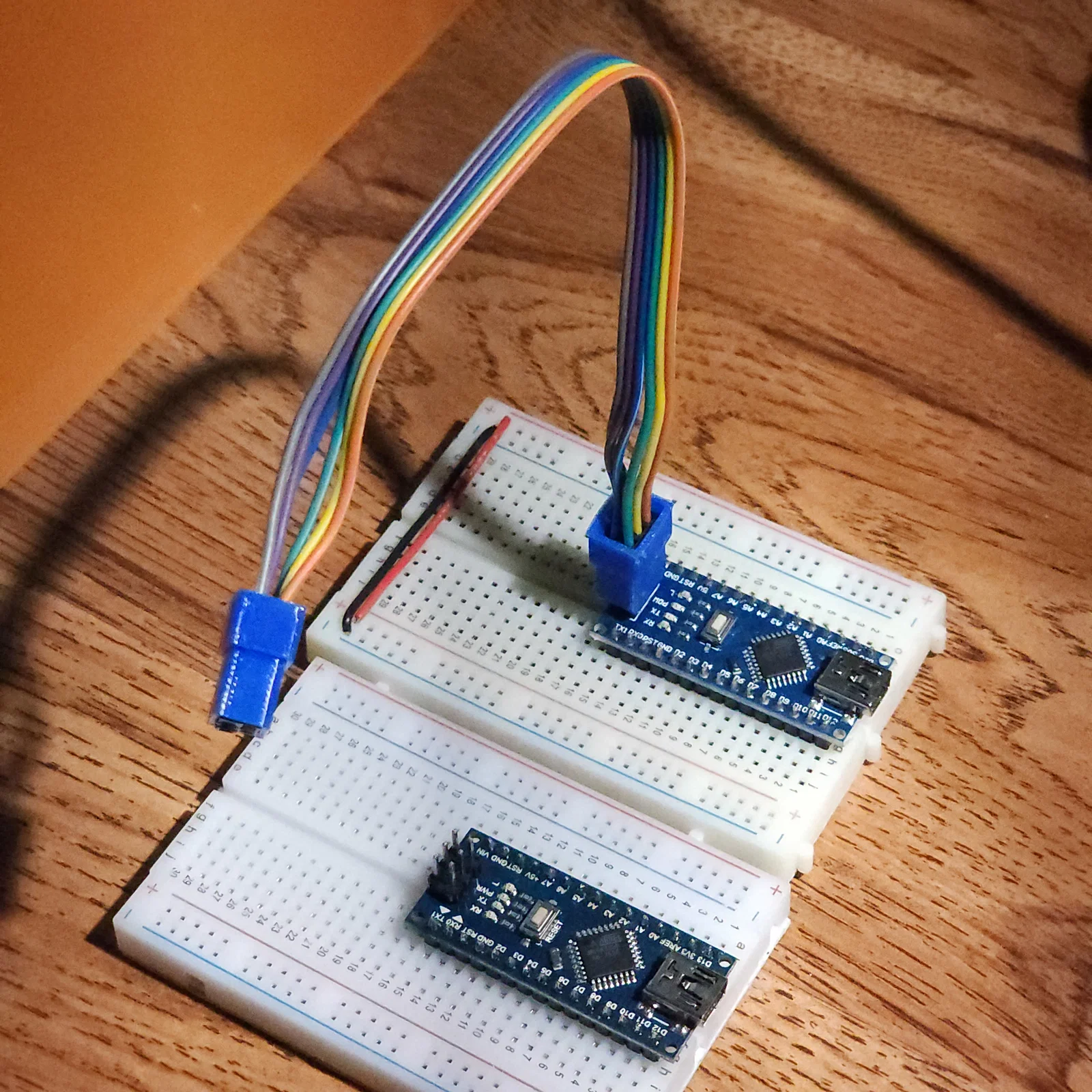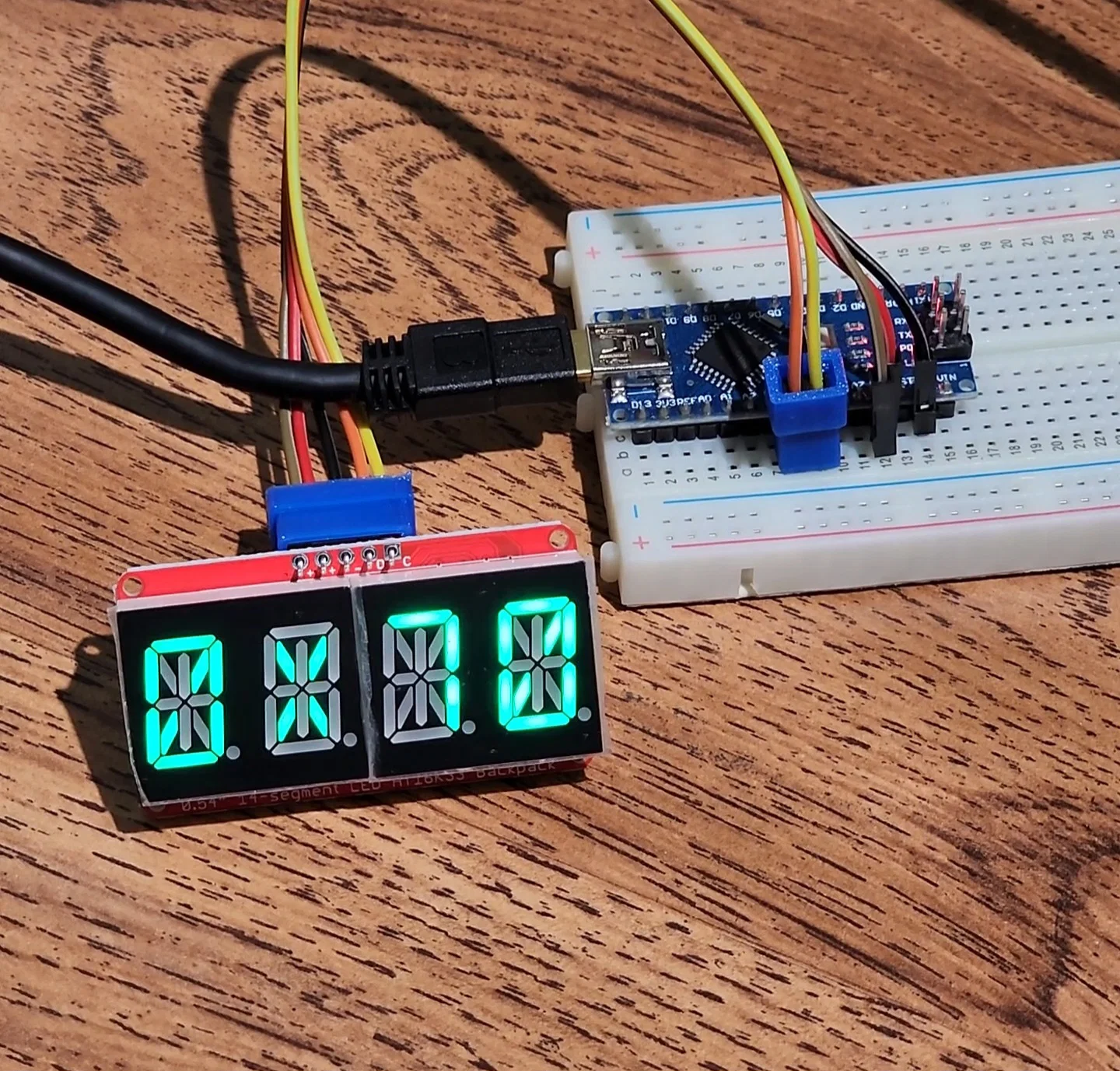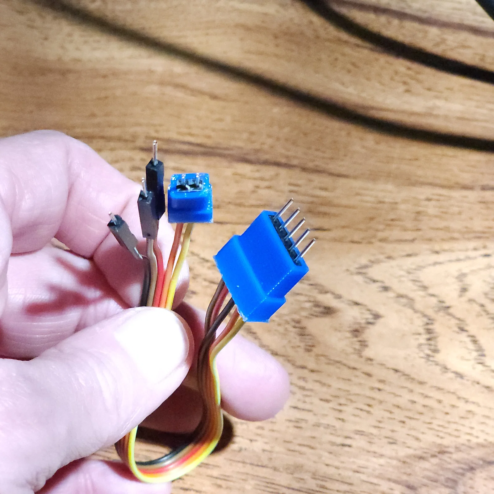 Tôi cần kiểm tra một vài màn hình 14-segment mới. Việc giữ 5 chân jumper theo đúng thứ tự để thử nghiệm nhanh từng màn hình thật sự rất phiền phức. Vì vậy, tôi đã thiết kế các bộ gom dây nhỏ để gộp các chân này lại một cách bán vĩnh viễn.