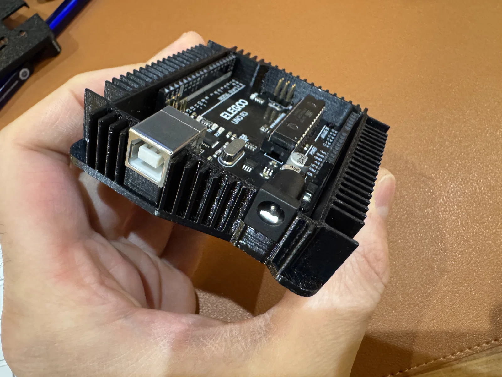Tôi thiết kế để con UNO nằm gọn gàng trên bốn trụ đỡ nhỏ bên trong. Điều này có nghĩa là bạn cũng chẳng cần dùng ốc vít để cố định board. Rất dễ tháo lắp nhưng vẫn đủ chắc chắn để sử dụng.