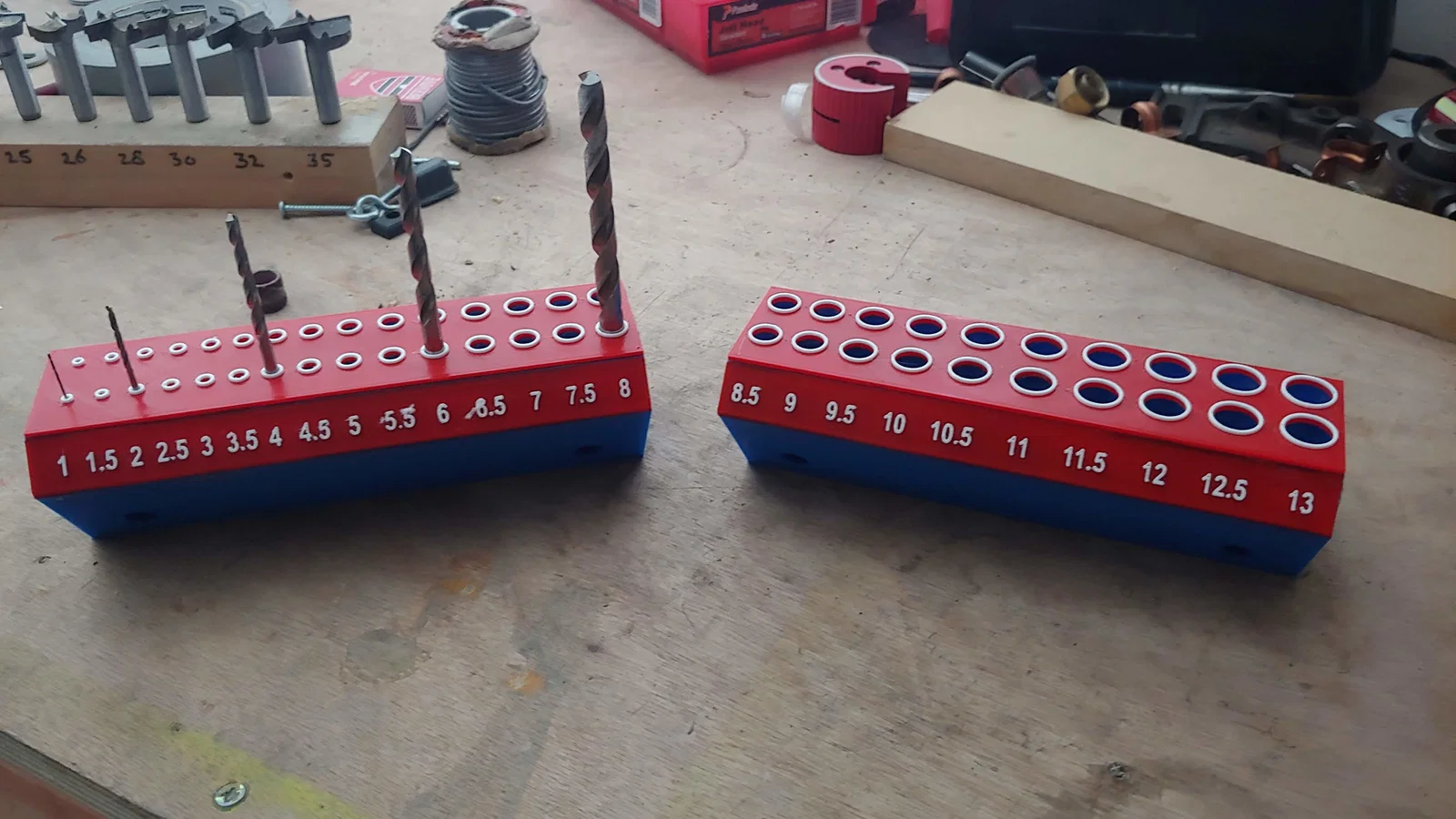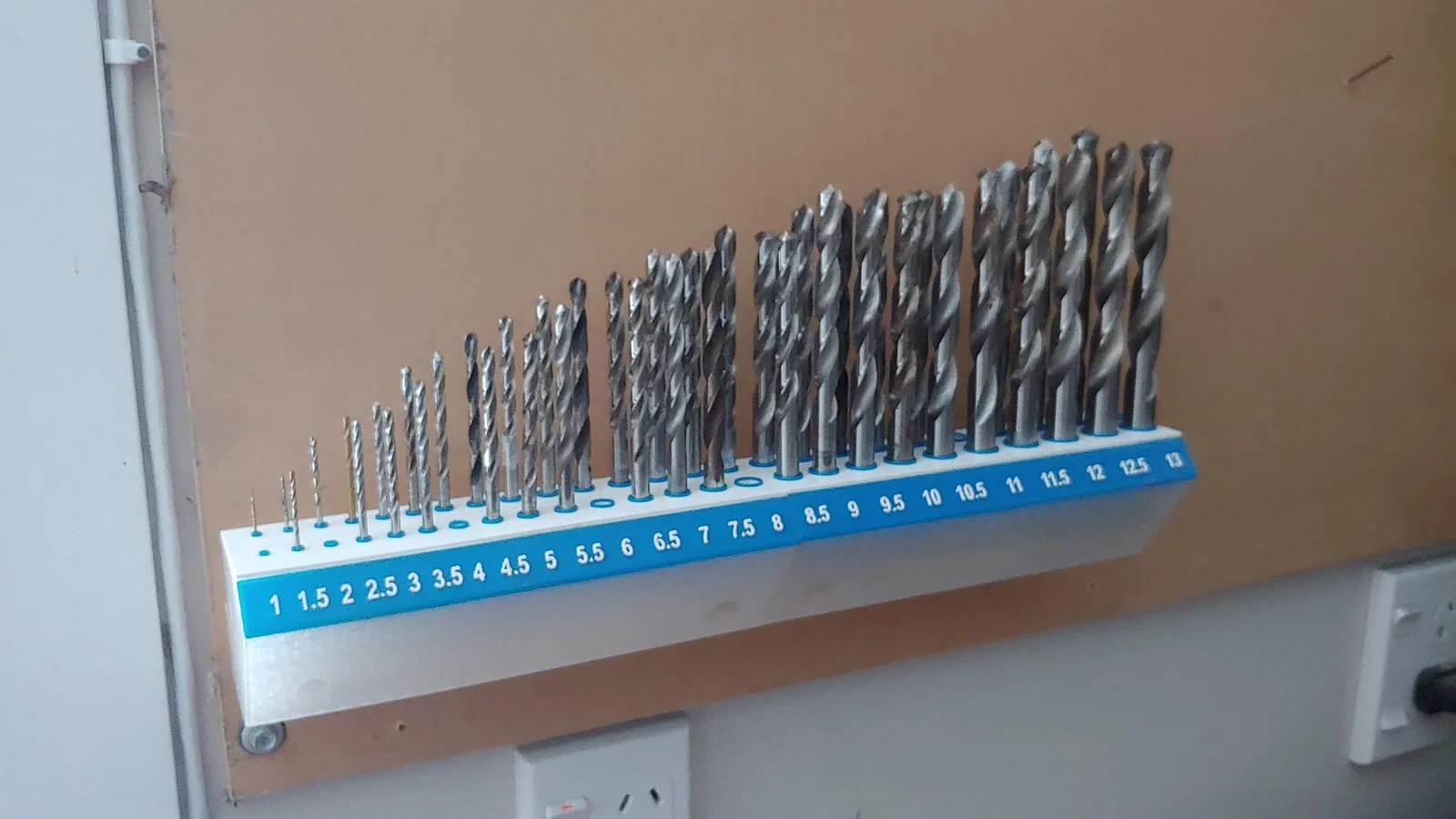 Giá đỡ mũi khoan hai hàng tiện lợi, dùng để đặt trên bàn hoặc treo tường. Phù hợp cho mũi khoan từ 1 - 13 mm. Thiết kế thông minh cho phép in 2 màu, dễ dàng lắp ráp và không cần support khi in 3D.