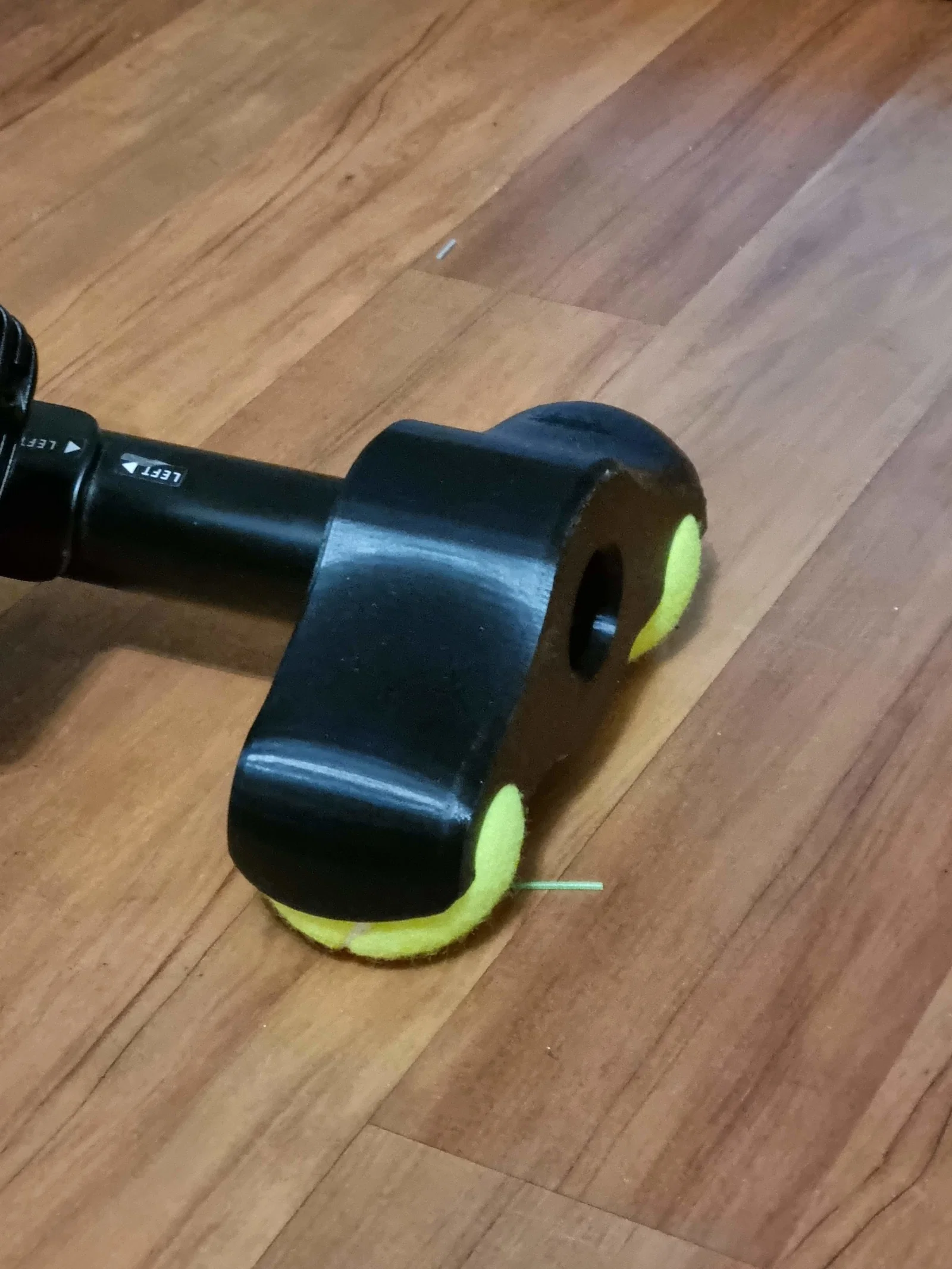 Mẫu thiết kế này là bản tùy chỉnh cho phần chân ống 40.3mm của máy tập Decathlon Van Rysel D100. Lỗ gắn được thiết kế với kích thước 40.4mm, giúp lắp vào vừa khít mà không cần dùng đến búa hay dụng cụ hỗ trợ mạnh.