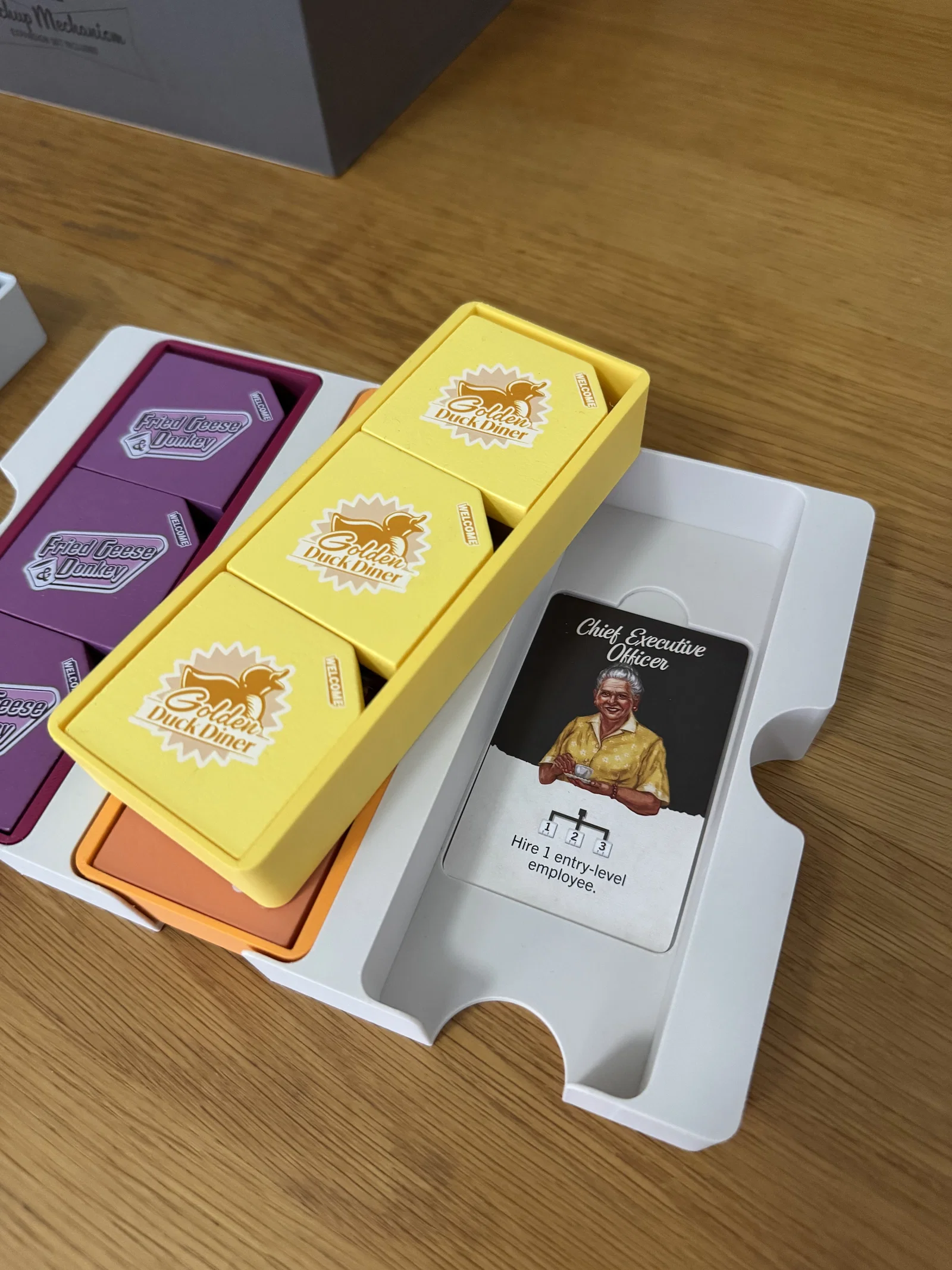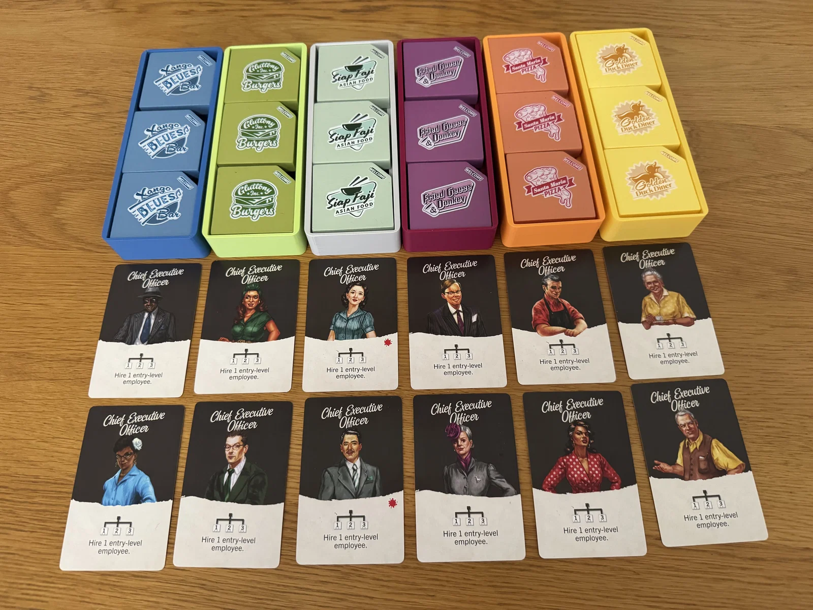 Trong các trò chơi của chúng mình, người chơi thường mất khá nhiều thời gian để quyết định ai sẽ là CEO. Khi xem xét các lá bài CEO, có vẻ như các nhà thiết kế đã ngầm ghép cặp hai CEO với mỗi nhà hàng (xem hình ảnh). Với phiên bản này, khi bạn nhấc khay nhà hàng lên, hai lá bài CEO sẽ được giấu bên dưới để người chơi lựa chọn thay vì phải tiếp cận với tất cả các lá bài cùng lúc.