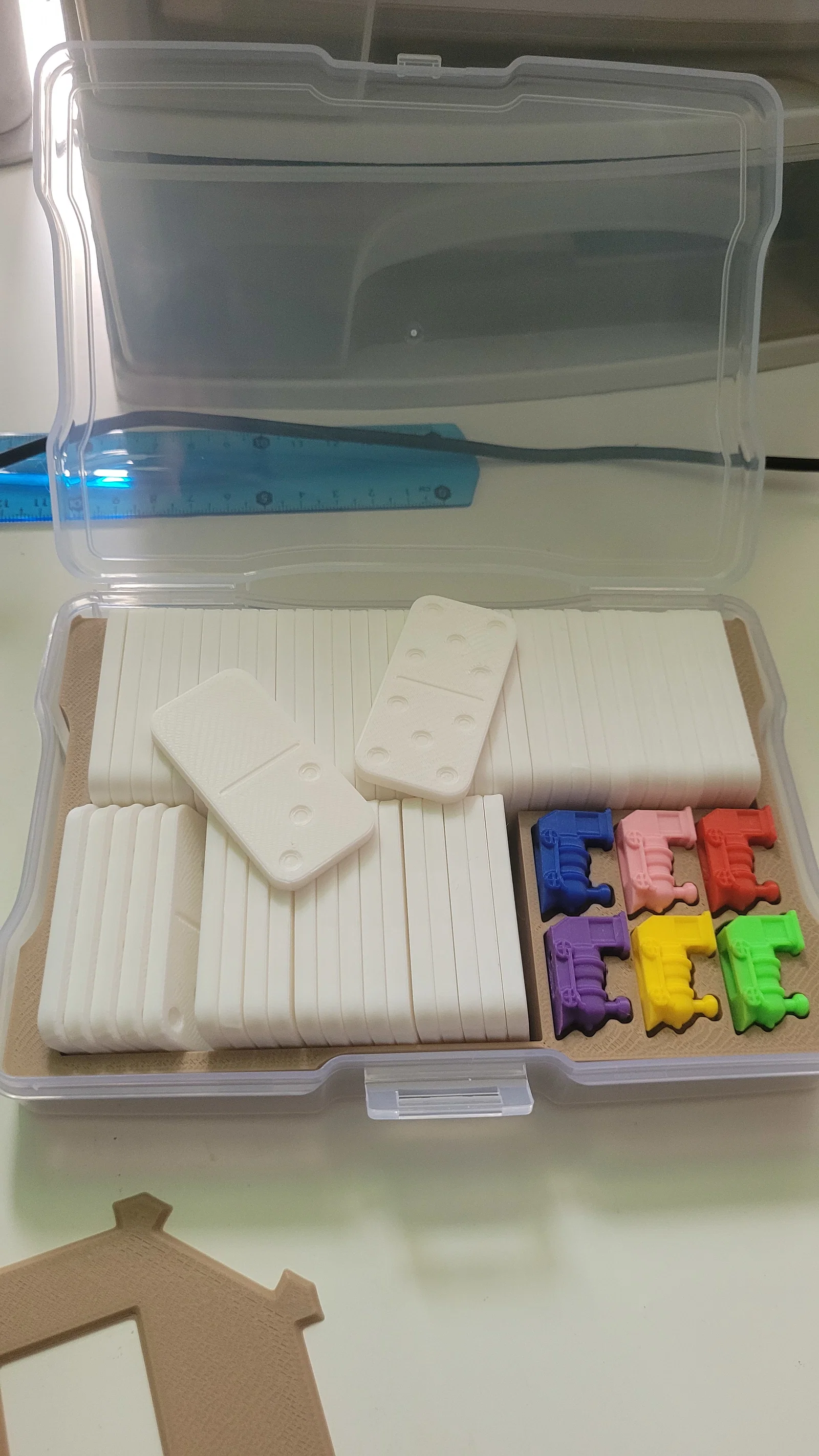 Tôi đã tổng hợp, chỉnh sửa kích thước và sắp xếp các file STL để tạo ra bộ cờ Mexican Train hoàn chỉnh, vừa khít với hộp đựng ảnh (photo caddy) phổ biến. Bao gồm đầy đủ các chi tiết cần thiết để in ấn dễ dàng cho người chơi Board Game.