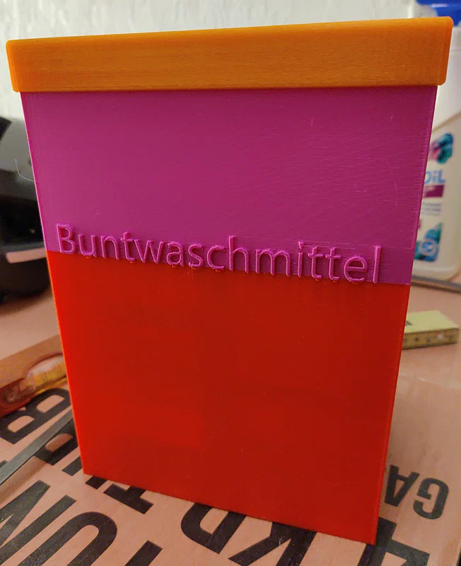 MẸO: Bạn có thể dùng tính năng Embosstool của Orca để viết chữ "Buntwaschmittel" (bột giặt đồ màu) hoặc "Vollwaschmittel" (bột giặt đồ trắng) lên hộp cho đẹp.