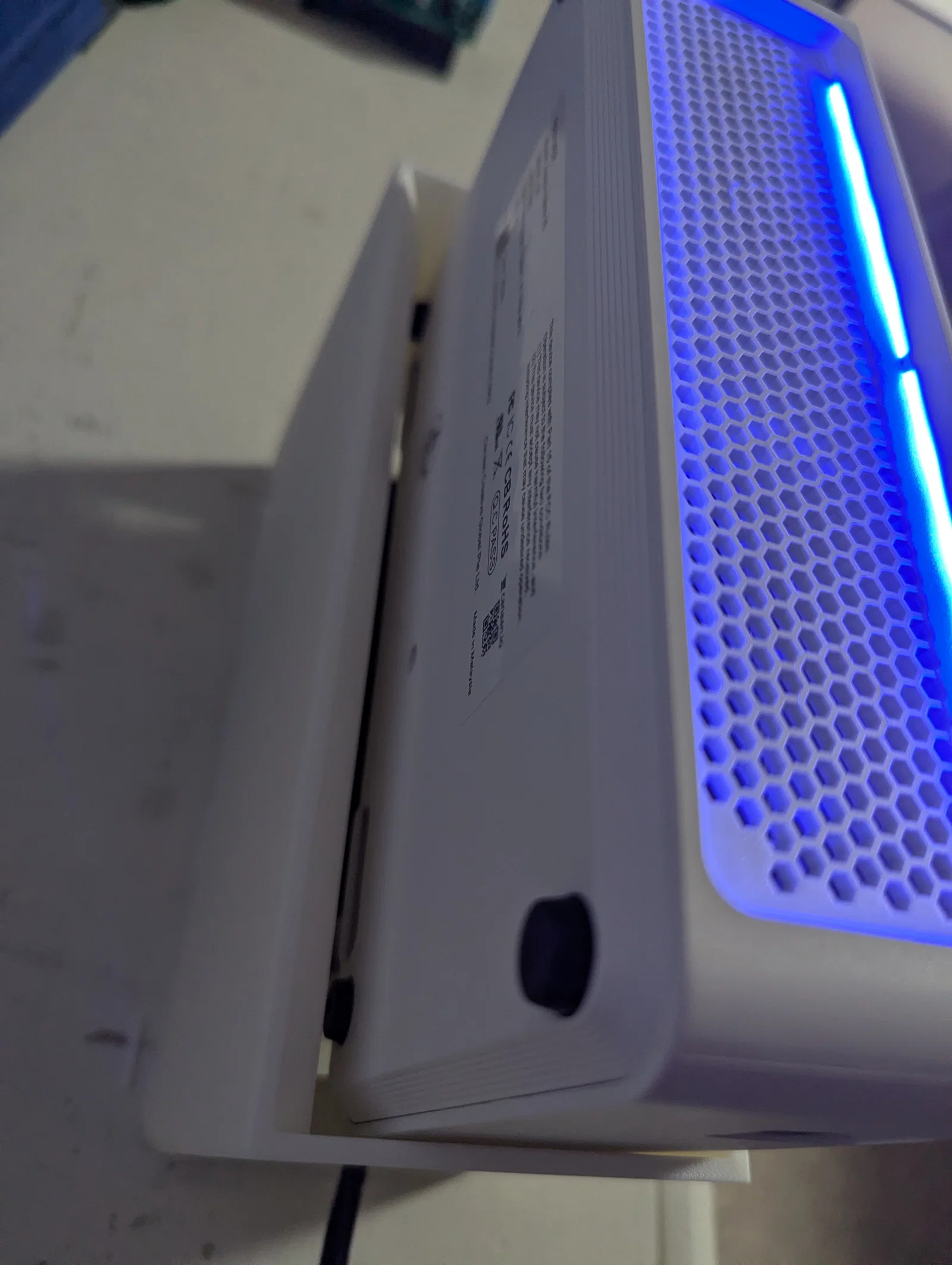 Mình đã chỉnh sửa lại thiết kế gốc, làm cho nó cao hơn để có thể đặt bộ nguồn (PS) ở ngay phía dưới thiết bị. Nhờ việc đặt PS bên dưới, luồng không khí mát sẽ được hút qua bộ nguồn, giúp nó giữ được nhiệt độ thấp hơn đáng kể. Mình dùng Tinkercad để điều chỉnh nhanh mẫu này, vì mình không phải là dân chuyên nghiệp nên bản vẽ có thể cần hoàn thiện thêm chút nữa.