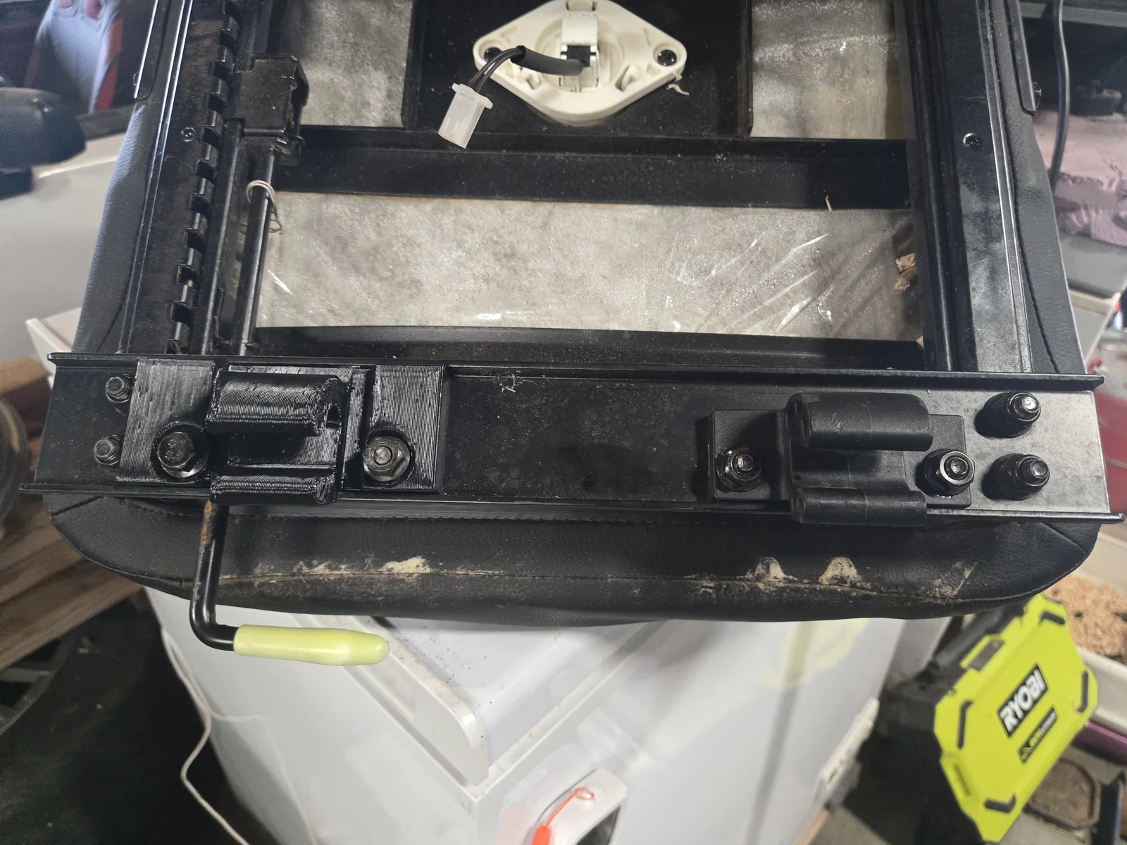 Đây là mẫu giá đỡ yên thay thế tương thích cho dòng máy cắt cỏ ngồi lái Ryobi 42" 80v. Mình chưa có dịp thử nghiệm nhiều ngoài việc ngồi lên và lắc qua lắc lại để kiểm tra độ chắc chắn. Mình sẽ cập nhật thêm thông tin sau một mùa cắt cỏ. Chất lượng in nhìn không được đẹp lắm vì mình dùng đầu phun .6mm với chiều cao lớp in .48mm để in cho nhanh (và hy vọng là nó sẽ cứng cáp). Mình chỉ để 4 tường (walls) và dùng loại nhựa PETG giá rẻ trên Amazon. Nếu cái này bị gãy, mình sẽ thử in bằng loại nhựa tốt hơn với số lượng tường nhiều hơn để làm cho nó đặc hơn. Mình đã tăng độ dày của phần đế nhưng có khoét lõm phần đầu bu-lông để có thể tận dụng lại bu-lông zin, hy vọng là nó sẽ chắc chắn hơn một chút.