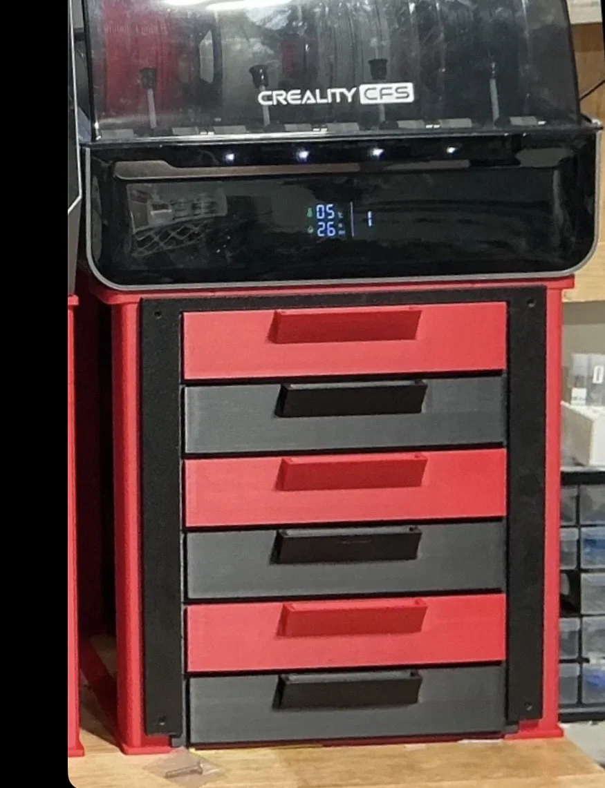 Giá đỡ CFS kèm ngăn kéo được thiết kế để sắp xếp và hỗ trợ Hệ thống nhựa in Creality (CFS) trên trạm làm việc K2 / K2 Plus. Giá đỡ cung cấp một nền tảng ổn định cho CFS, đồng thời tích hợp thêm các ngăn kéo trượt mượt mà giúp cải thiện khả năng tổ chức và hiệu suất làm việc. Mô hình này hướng tới nhu cầu trong xưởng hoặc dành cho người chơi hệ hobby, giúp việc quản lý sợi nhựa và tiếp cận dụng cụ trở nên gọn gàng, hiệu quả hơn.
