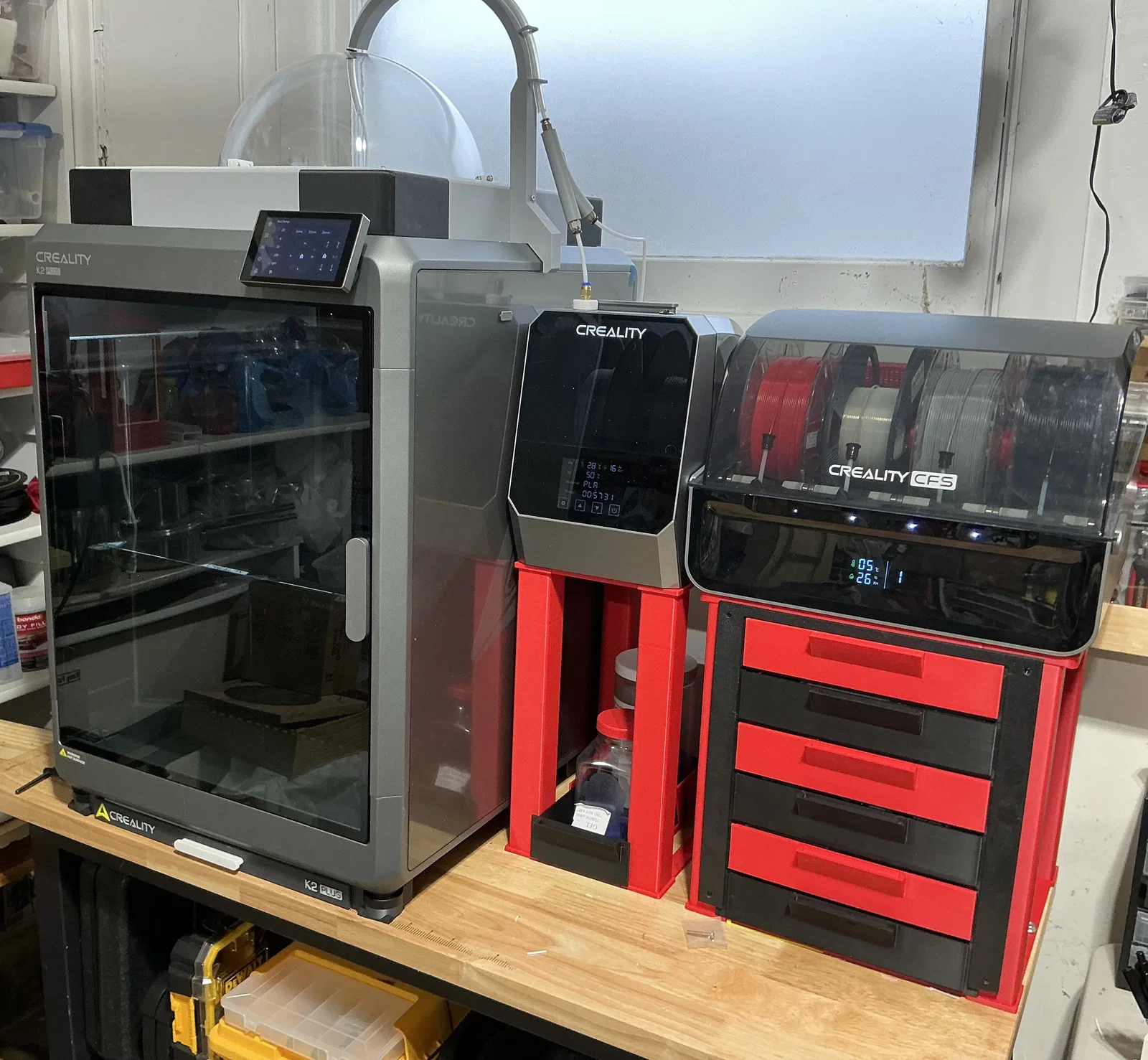 Giá đỡ CFS vững chãi, không cần support, tích hợp ngăn kéo trượt mượt mà cho dòng Creality K2/K2 Plus. Giải pháp tối ưu giúp tiết kiệm diện tích, tổ chức không gian làm việc và giúp việc thay nhựa trở nên dễ dàng hơn bao giờ hết.