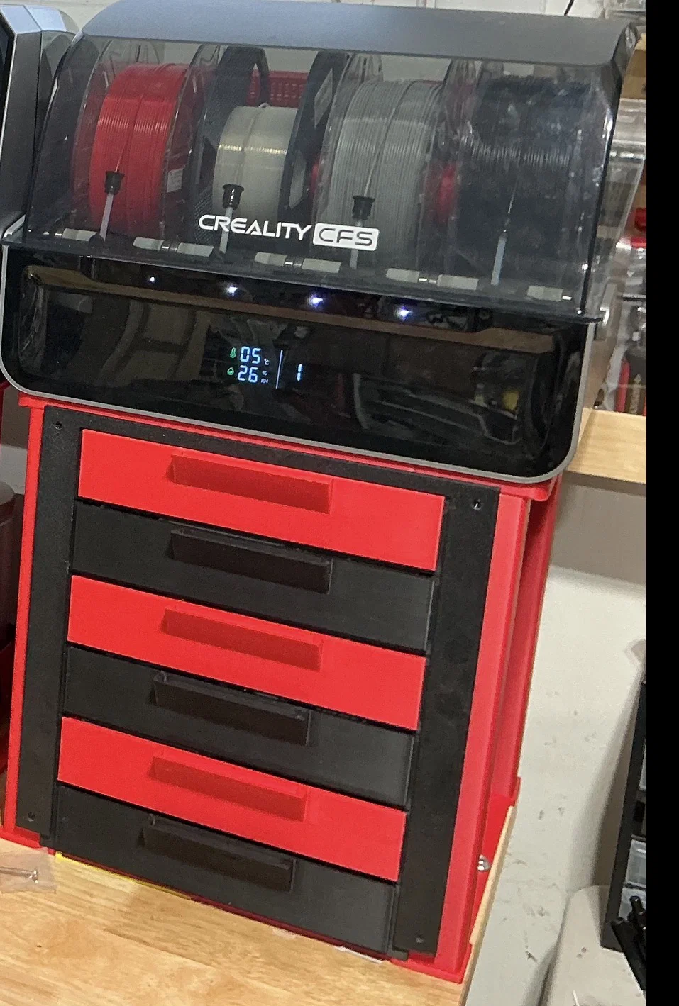 Thiết kế này đặc biệt nhằm hỗ trợ an toàn cho Creality CFS trong khi tích hợp ngăn chứa đồ gọn gàng ngay bên dưới. Sản phẩm mang lại độ bền, sự ổn định, tính mô-đun và dễ lắp ráp, phù hợp cho các không gian sáng chế (makerspaces), nhà xưởng và môi trường in 3D tại gia.