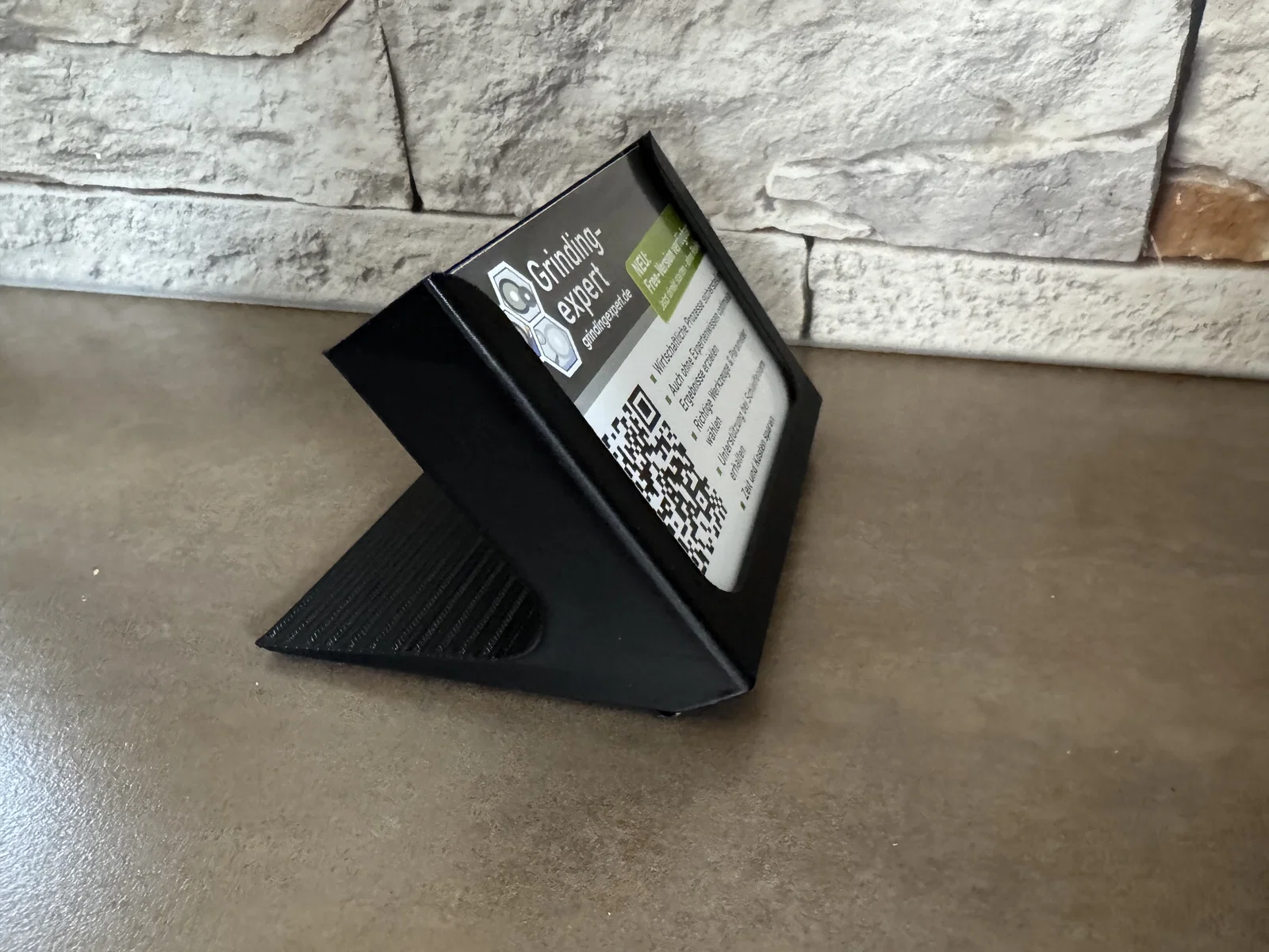 Sản phẩm được thiết kế với độ nghiêng hợp lý giúp người xem dễ dàng đọc nội dung trên tờ rơi mà không bị chói hay khó quan sát. Cấu trúc của kệ rất chắc chắn, có thể đặt trên mọi bề mặt phẳng mà không lo bị đổ ngã. Bạn có thể tự in tại nhà bằng máy in 3D cá nhân một cách dễ dàng. Dù bạn muốn quảng bá sản phẩm, giới thiệu dịch vụ hay để card visit, chiếc kệ in 3D này sẽ giúp nâng tầm sự chuyên nghiệp cho không gian của bạn.