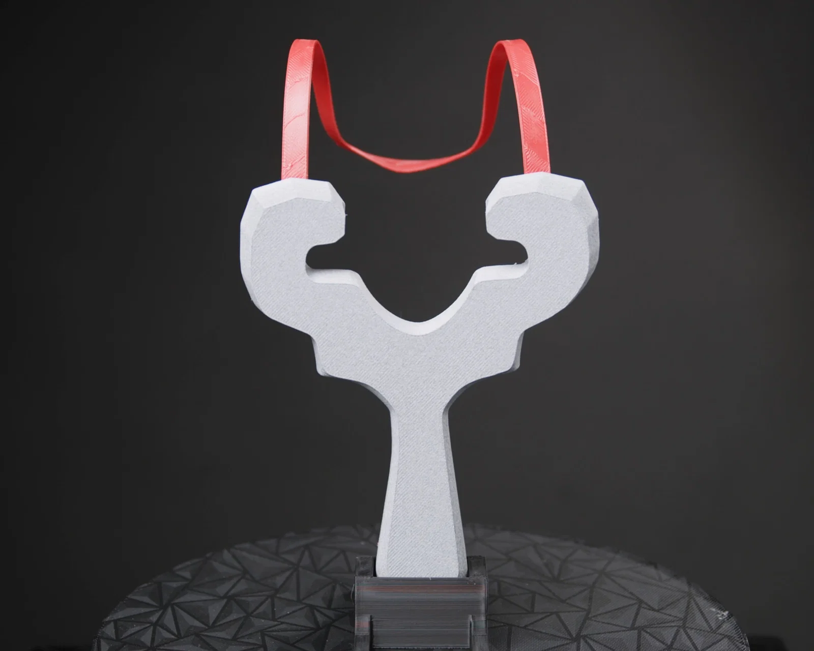 Thiết kế ná thun in nguyên khối, không cần lắp ráp. Sản phẩm này yêu cầu máy in đa vật liệu chuyên dụng và kết hợp giữa nhựa cứng (PETG/Carbon) với TPU siêu dẻo để đạt hiệu suất tốt nhất. Sản phẩm hỗ trợ đạn bi 20mm, uy lực mạnh mẽ, khuyến cáo sử dụng an toàn.