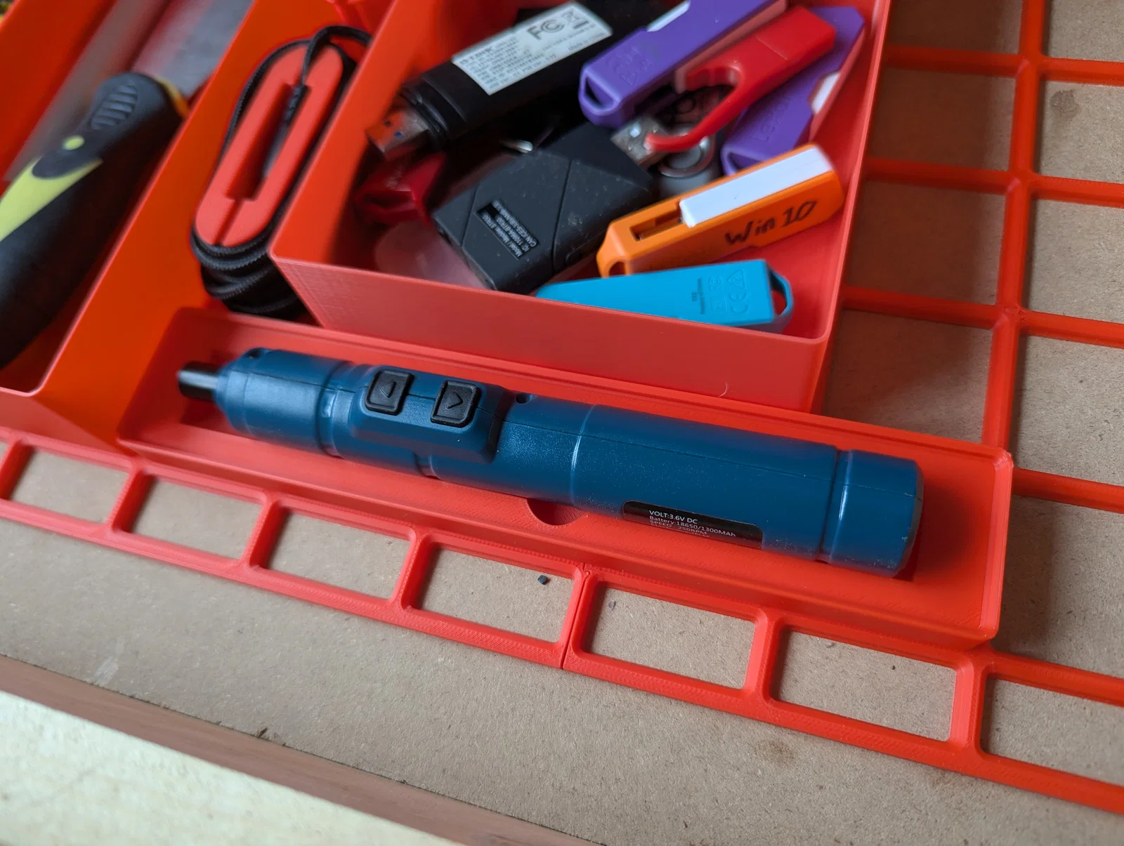 Khay đựng tua vít điện hệ Gridfinity 1x5 tiện lợi
