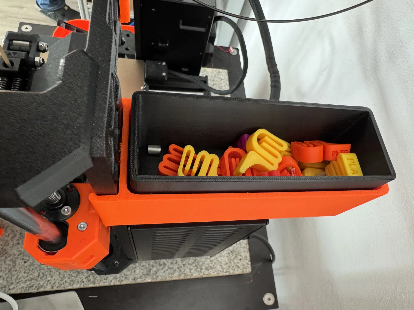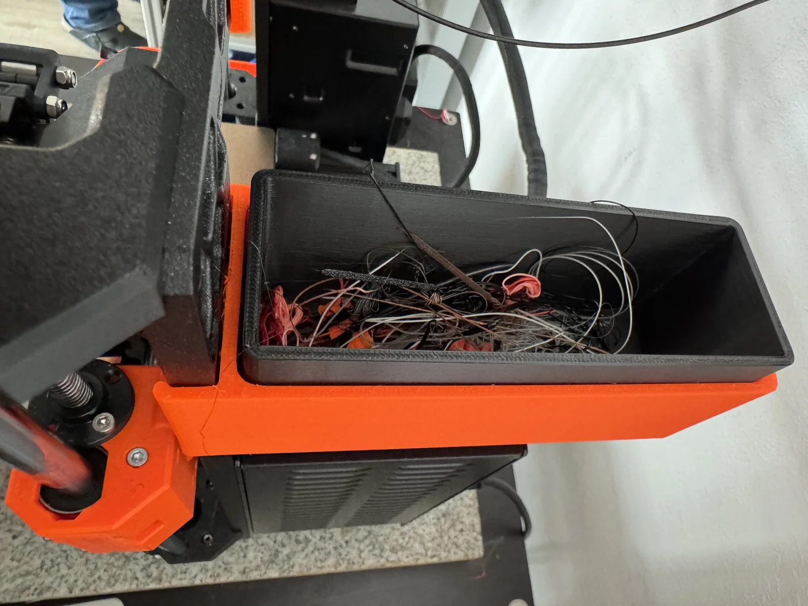 Với thiết kế dạng hộp chứa tiện lợi, bạn có thể dễ dàng tận dụng nó để gom những đoạn rác nhựa (filament poop) phát sinh trong quá trình in hoặc dùng làm nơi chứa các linh kiện nhỏ như kẹp nhựa, ốc vít hay các vật dụng hỗ trợ khác. Nhờ việc lắp đặt trực tiếp vào khung máy, mọi thứ sẽ luôn ở trong tầm tay, giúp khu vực máy in của bạn lúc nào cũng ngăn nắp, gọn gàng và chuyên nghiệp hơn rất nhiều.